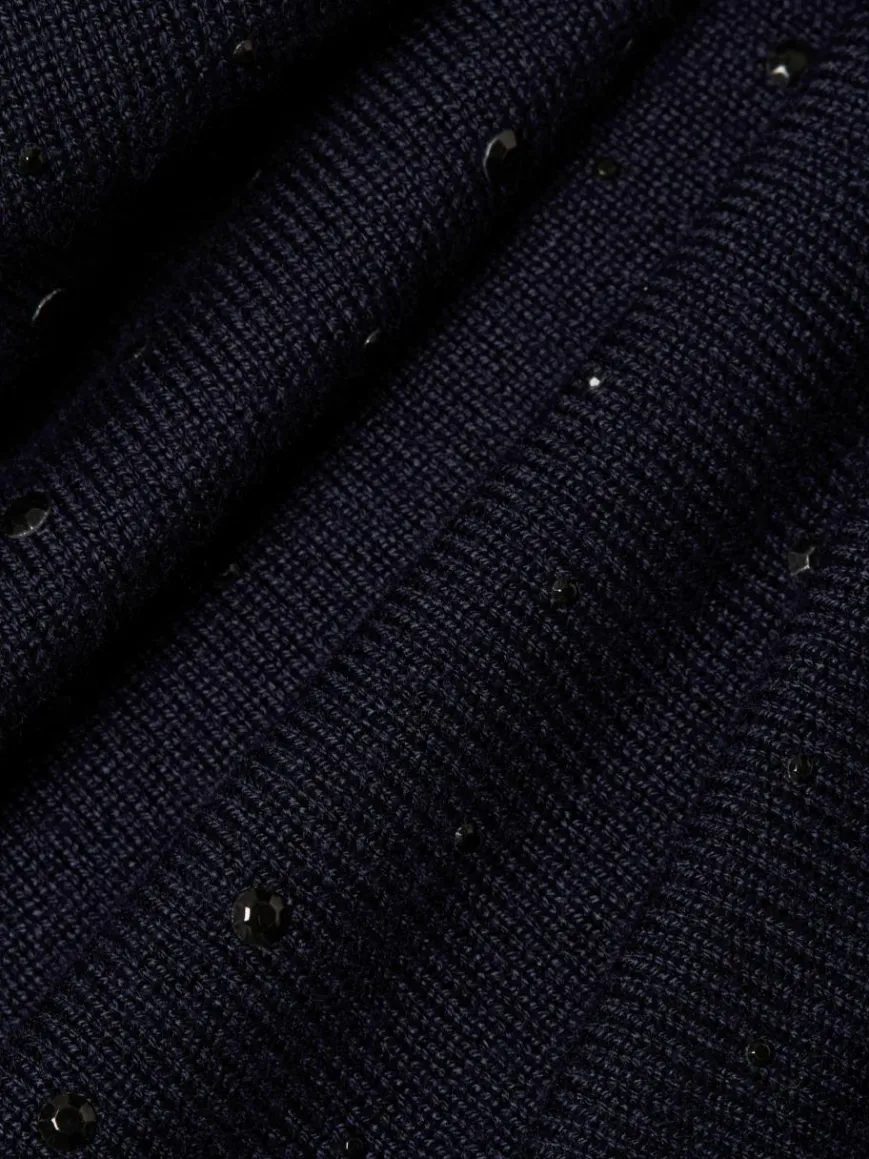 Die applizierten Schmucksteine bringen den puristischen Feinstrickpullover von Marie Lund aus Viskose-Mix mit halblangen Ärmeln schön zum Funkeln.
