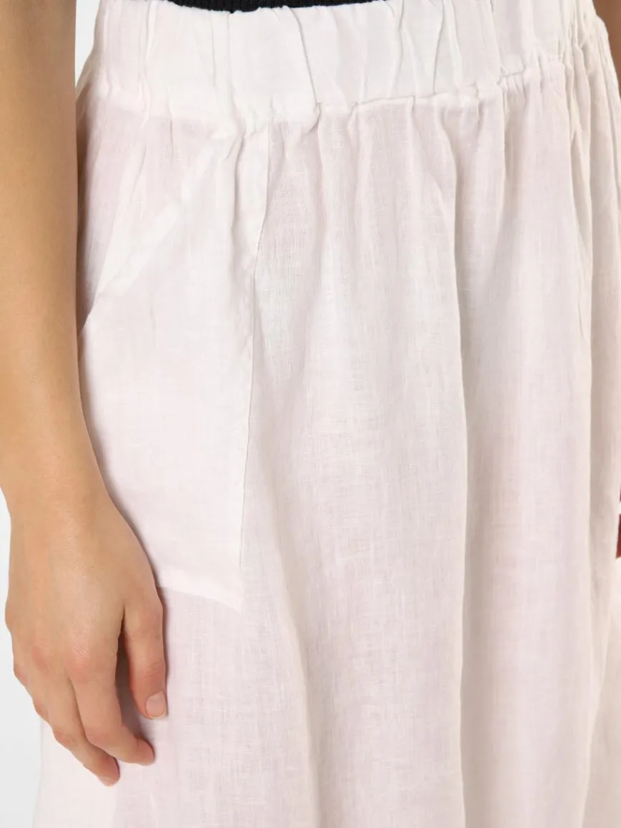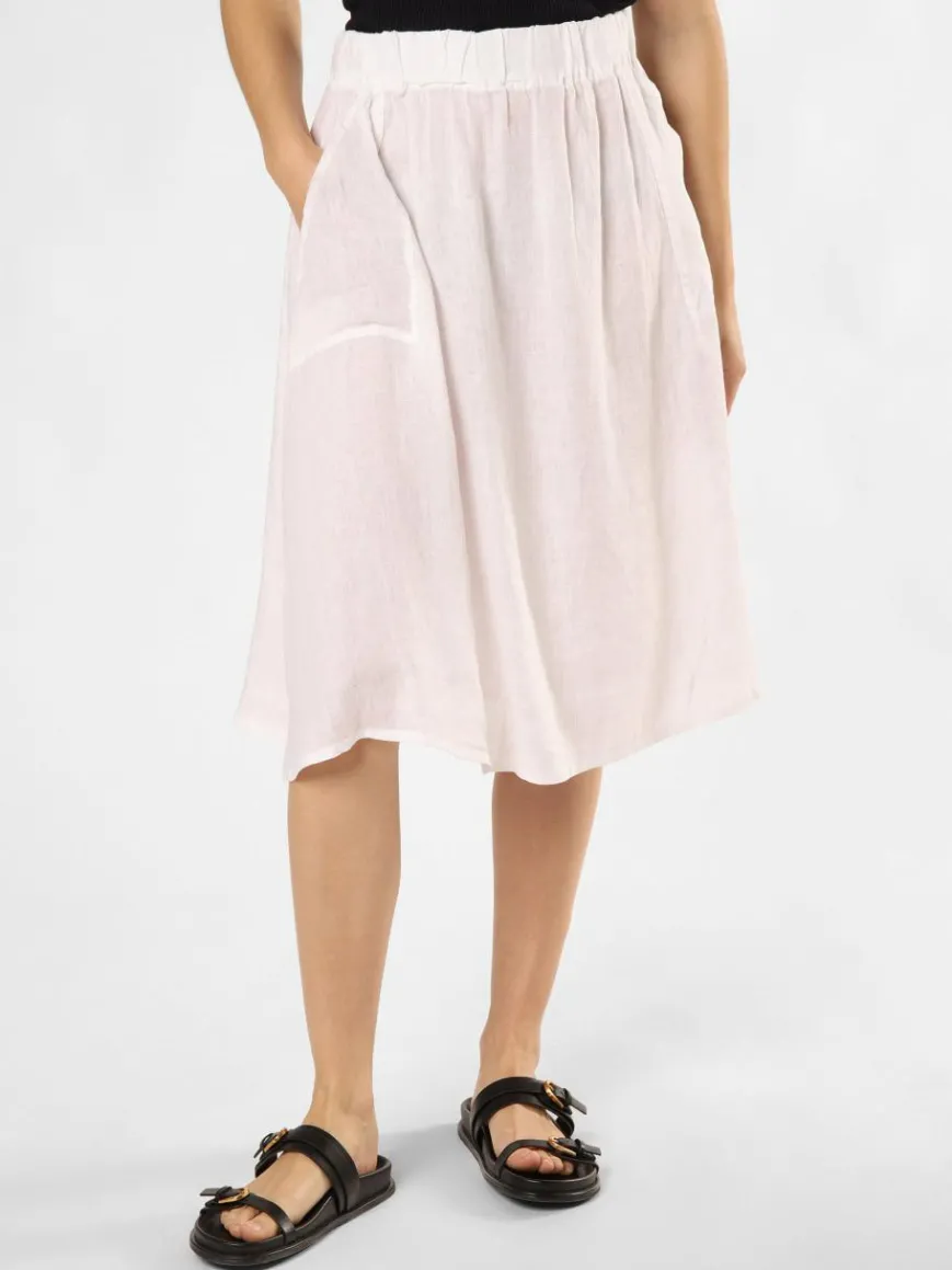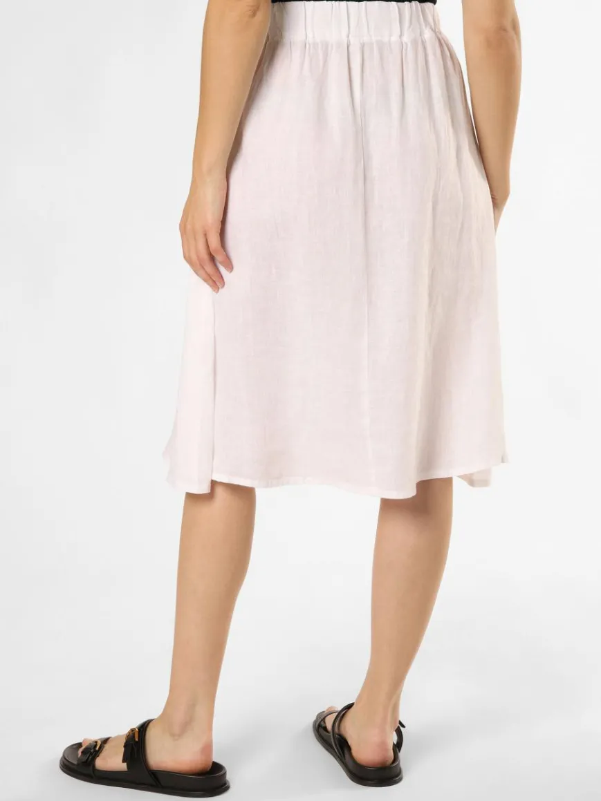 Reines Leinen ist bei hohen Temperaturen angenehm kühlend und der Rock von Marie Lund dadurch ein echter Favorit für den Alltag.