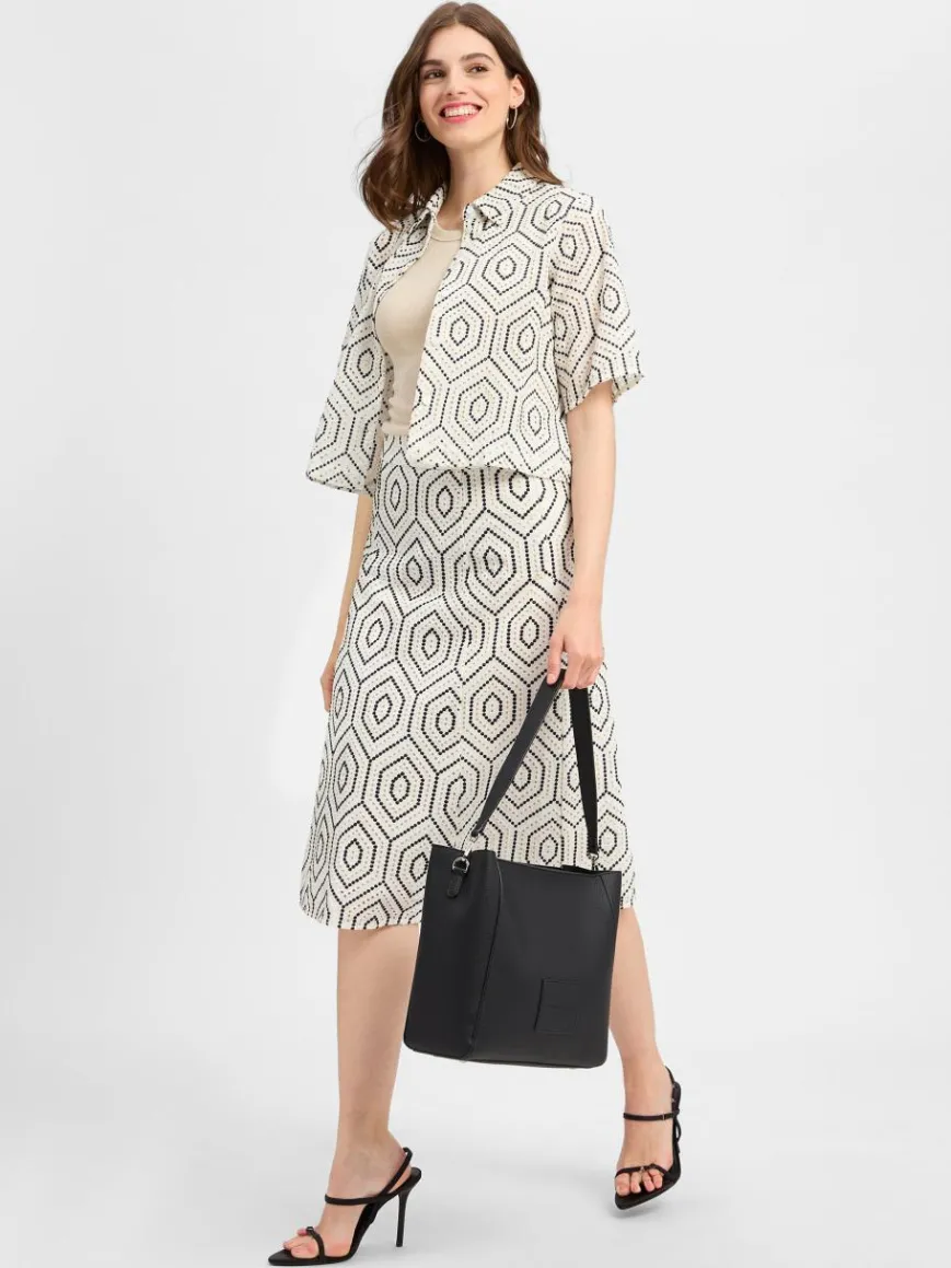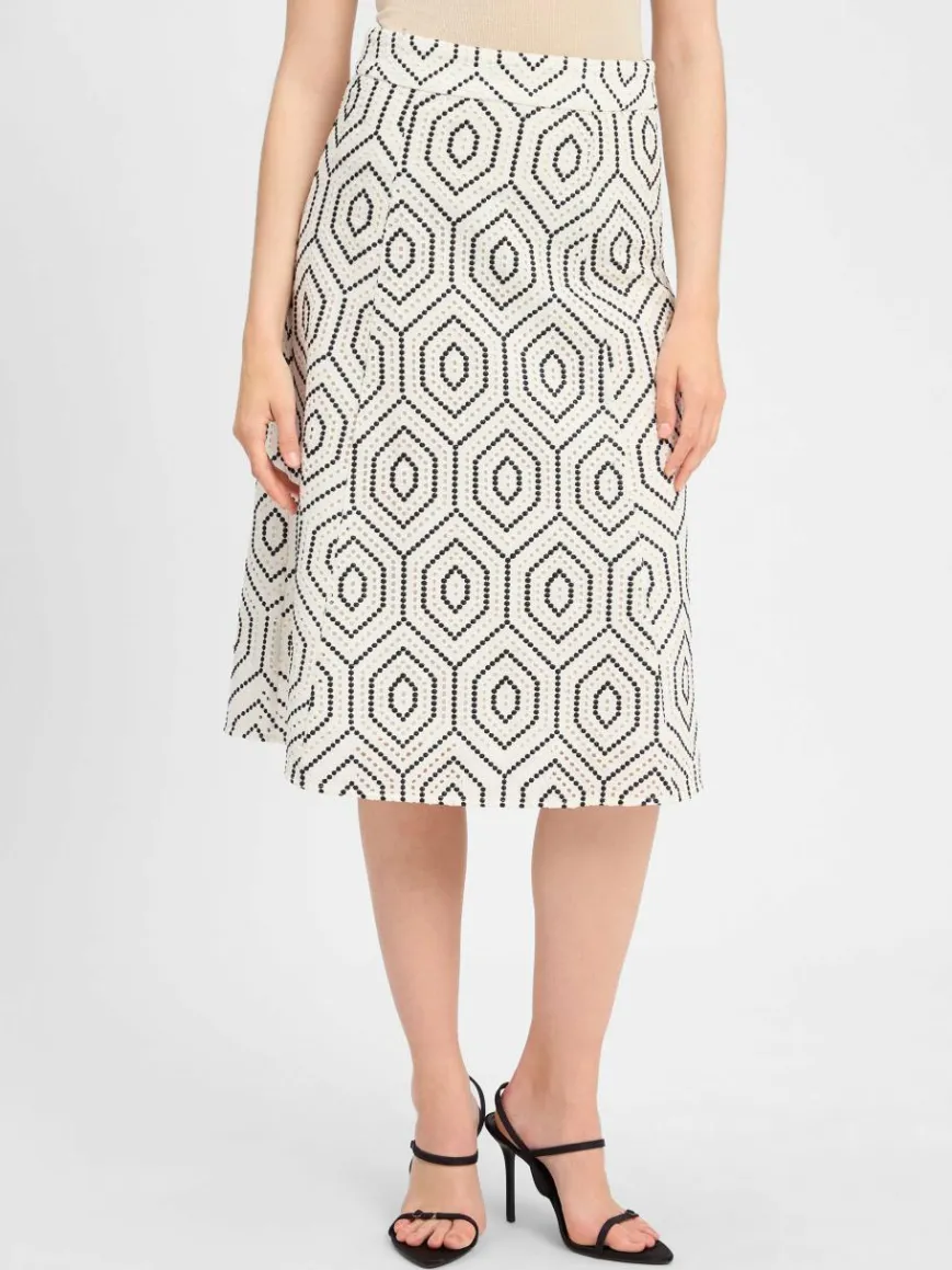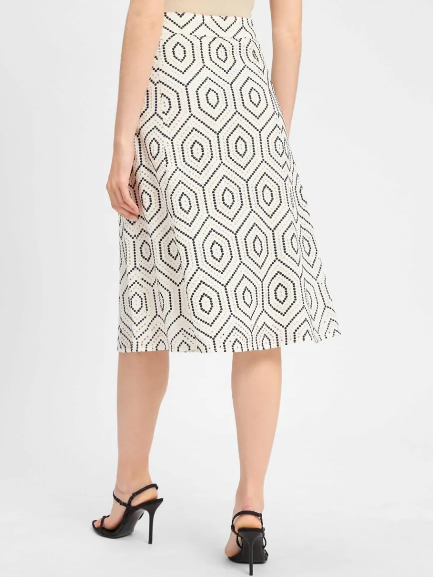 Die zweifarbige Lochstickerei im grafischen Stil zaubert aus dem Marie Lund Rock einen zeitlosen Eyecatcher mit femininem Touch.