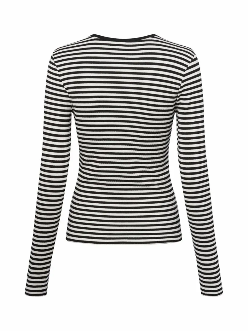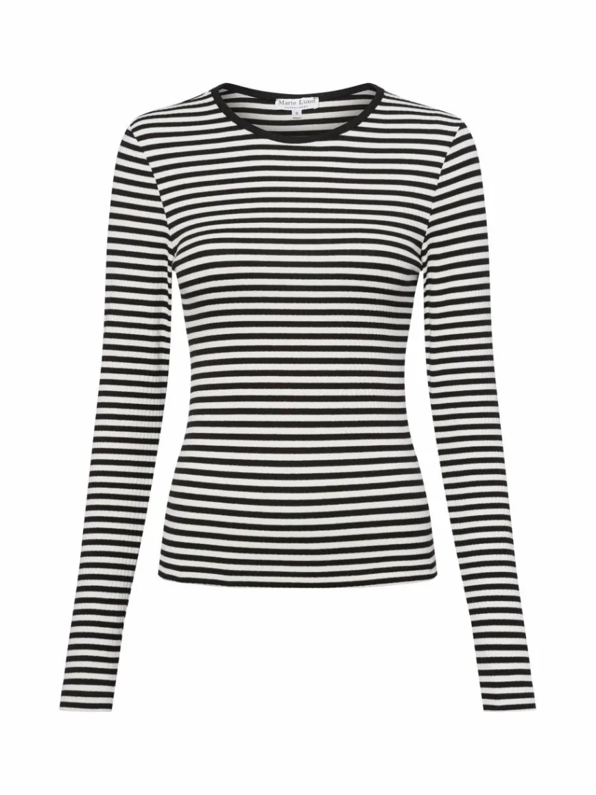 Das Longsleeve von Marie Lund setzt mit dem stretchigem Rippjersey auf einen comfy Style, der in Kombination mit der passenden Hose einen coolen Homewear-Look ergibt.