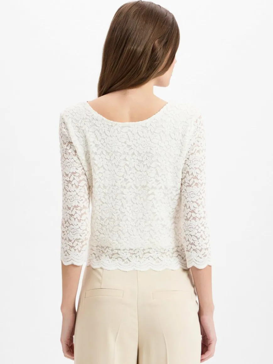 Das Spitzentop von Marie Lund verbindet auf meisterhafte Weise feminine Eleganz mit trendigem Chic, sodass es bei festlichen Anlässen einen beeindruckenden Auftritt garantiert und im Alltag jedes Casual-Outfit stilvoll aufwertet.