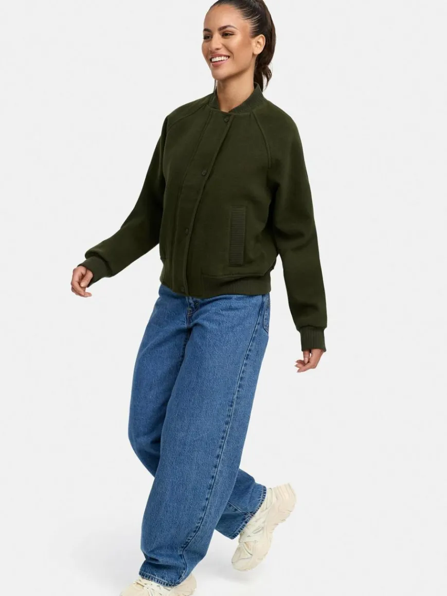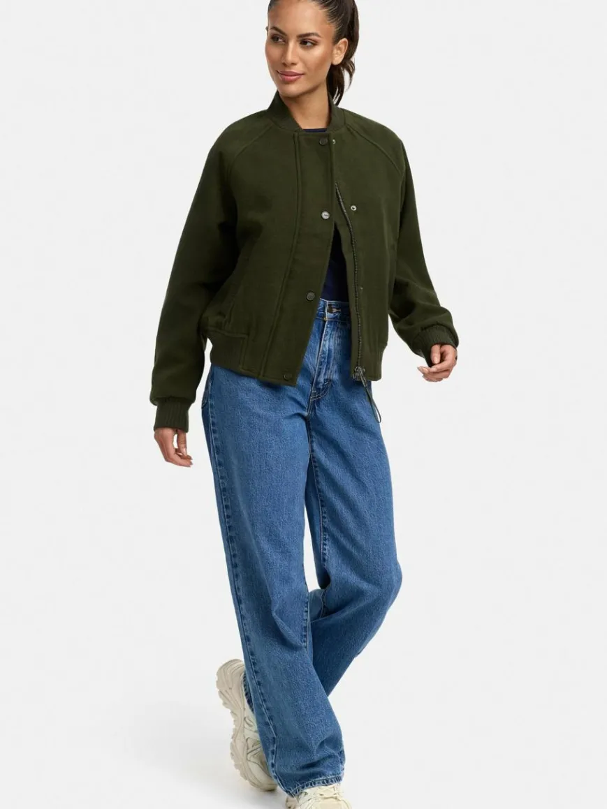 Die modische Blousonjacke vereint urbanen Chic mit zeitlosem Design. Die klare Linienführung und lässige Silhouette machen sie zum perfekten Begleiter für stylische Casual-Looks oder elegante Kombinationen mit High-Waist-Hosen und Röcken.