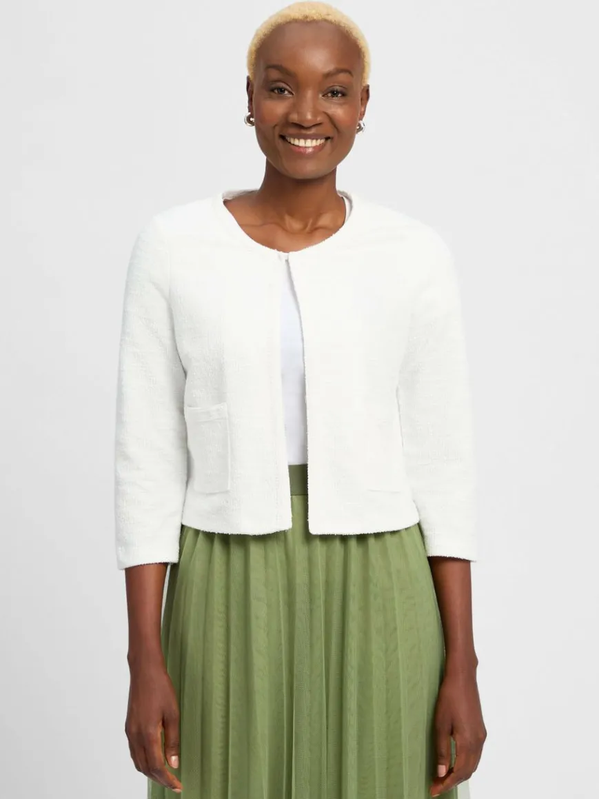 Der kurze Blazer von MORE & MORE überzeugt als elegante Indoorjacke mit stilvoller Struktur und hinterlässt dank seinem edlen Look überall einen glänzenden Eindruck.