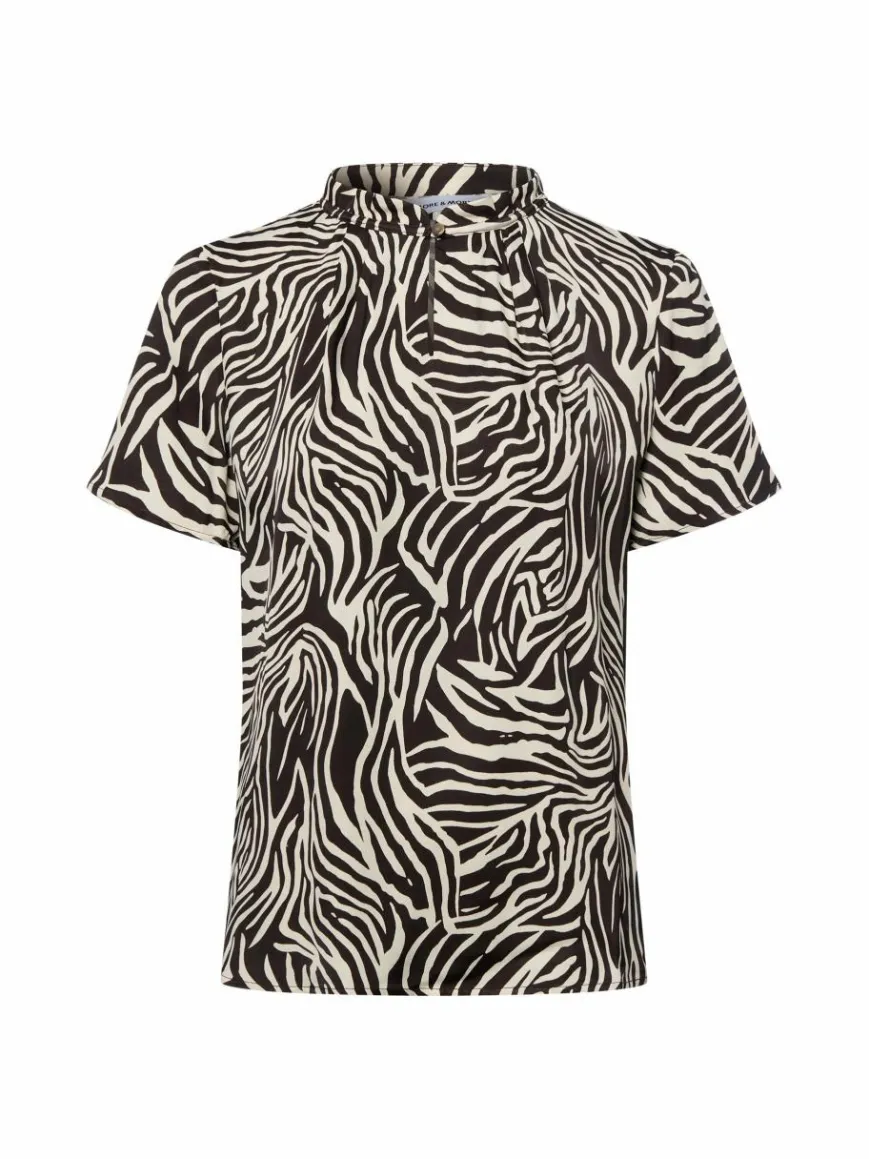 Das Blusenshirt von Rich&Royal begeistert mit fließender Viskose, modischen Ballonärmeln und einem auffälligen Allover-Print – ein stilvolles Key-Piece für sommerliche Looks.