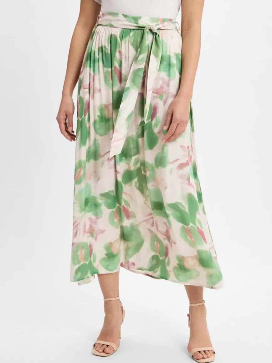 Der Rock von More & More in Midilänge überzeugt mit einem auffälligen All-Over-Muster und einem bequemen Gummizugbund. Der Bindegürtel und zwei Einschubtaschen ergänzen das Design perfekt und bieten zusätzlichen Komfort. Hergestellt aus 100% Viskose für ein angenehmes Tragegefühl.