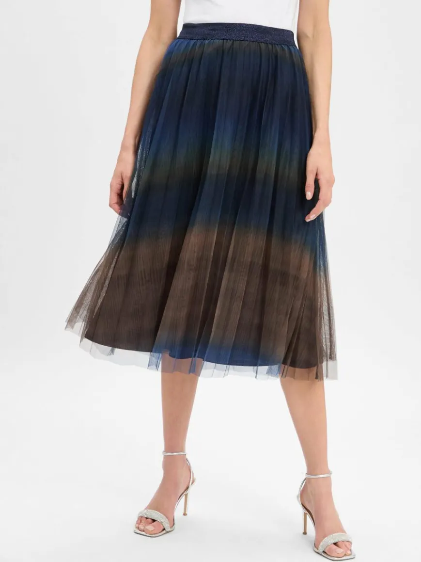 Der More & More Rock glänzt mit seinem glitzernden Stretchbund, einer leichten Tüll-Qualität und dezenten Batik-Optik – ein echtes Highlight-Piece.