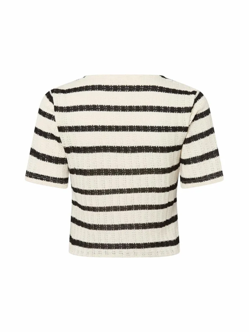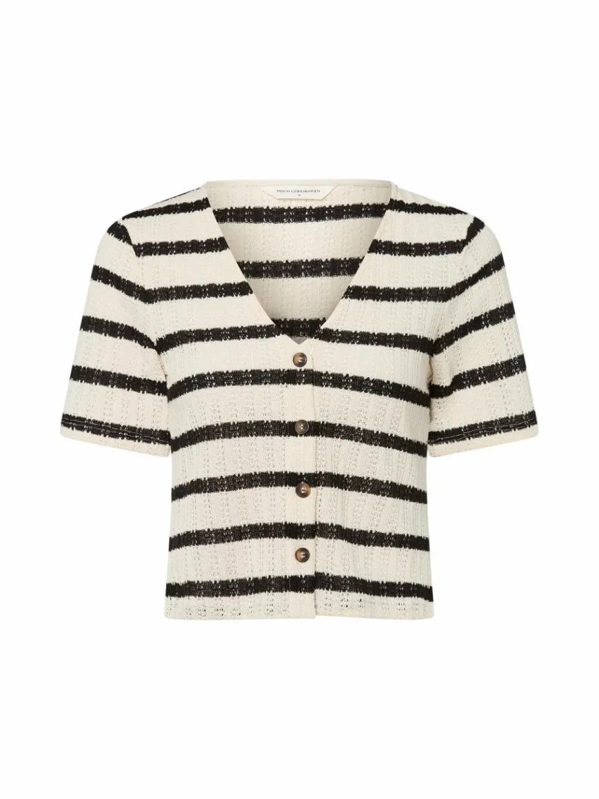 Ein modernes Upgrade für Top oder Bluse: die MSCH Copenhagen Strickjacke MSCHKenja im lässigen Look mit Streifen und kurzen Ärmeln.