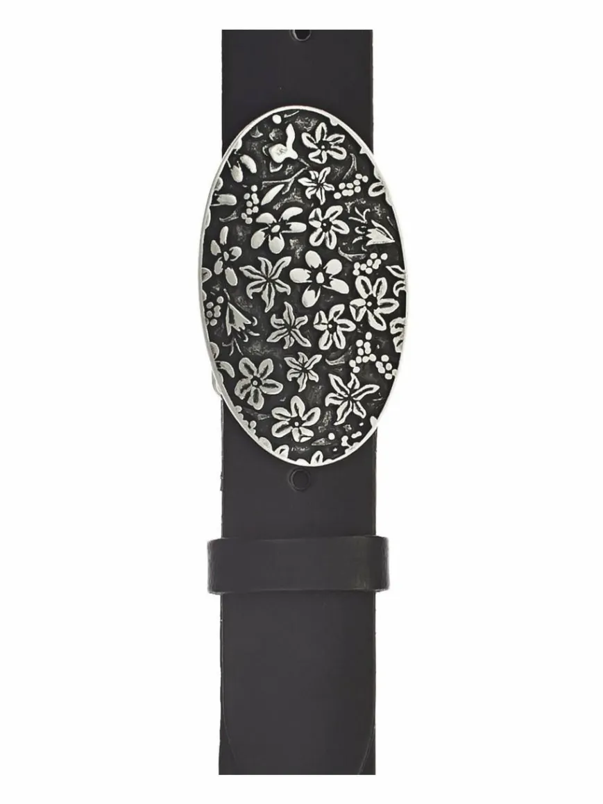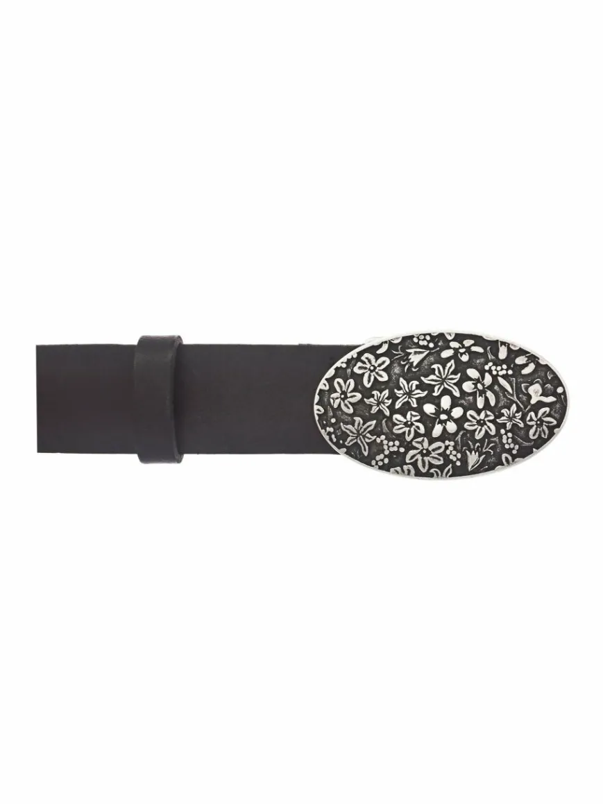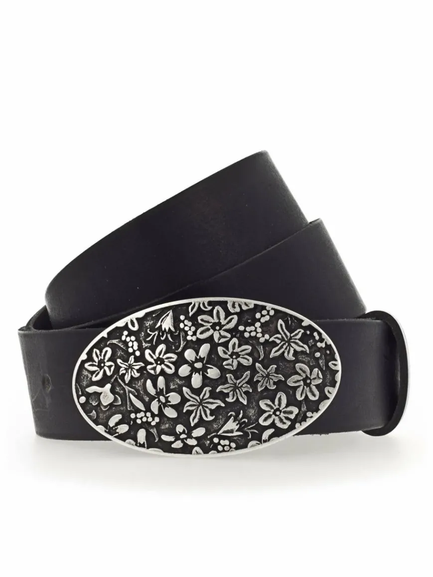 Welcome to Wild-West heißt es mit diesem Ledergürtel von Mustang. Einen Hauch von Country-Flair versprüht die aufwendig mit Blumenmustern gearbeitete Buckle im Cowboy-Stil. In poliertem Silber gearbeitet ist sie das Herzstück des Gürtels und zieht sämtliche Blicke auf sich. Trage sie zu coolen Jeans und einer Bluse im Karo-Look für den perfekten Style!