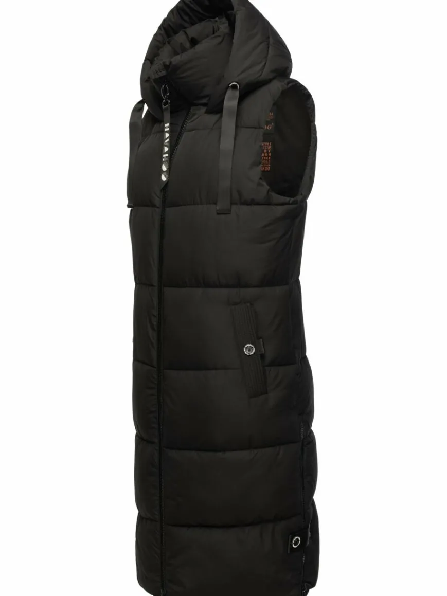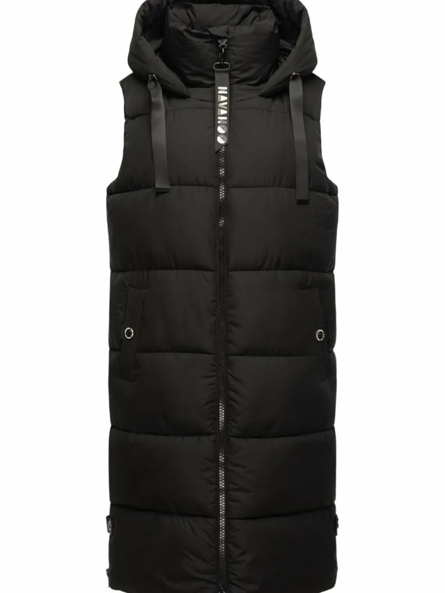 - Lange ärmellose Damen Steppweste (Long Vest) mit Kapuze