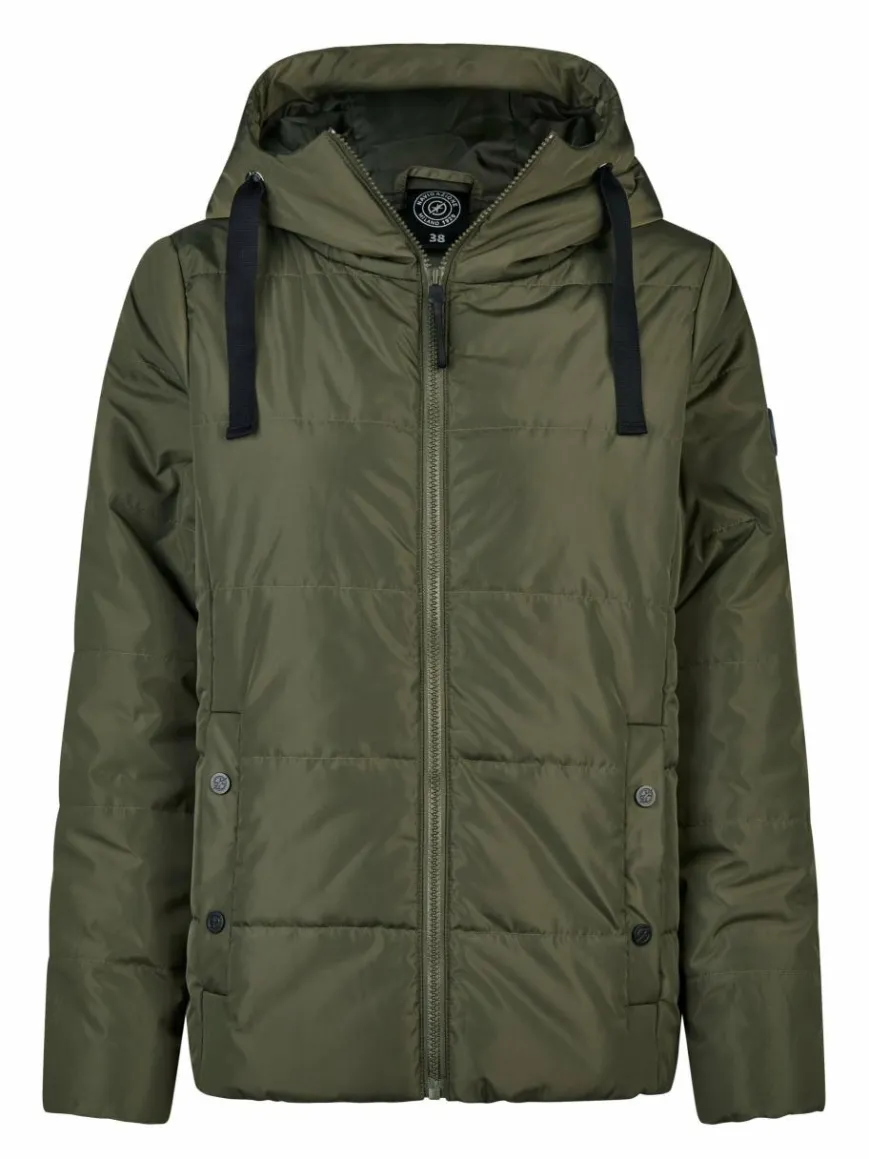 Diese wattierte Damenjacke kombiniert zeitloses Design mit maximalem Tragekomfort. Dank der Steppung bietet sie eine ausgezeichnete Wärmeisolierung und schützt zuverlässig vor Wind und Kälte. Der praktische Reißverschluss ermöglicht einfaches An- und Ausziehen, während die verstellbare Kapuze mit Kordelzug zusätzlichen Schutz bei unbeständigem Wetter bietet. Zwei Taschen setzen modische Akzente und bieten zugleich ausreichend Platz.