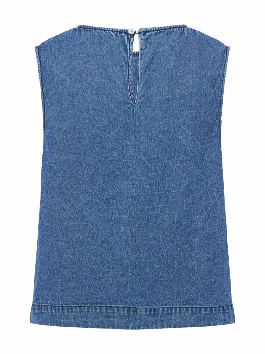 Seitliche Schlitze mit Bindeband machen den trendbewussten Look des Neo Noir Denim-Blusentops Svetlana perfekt.