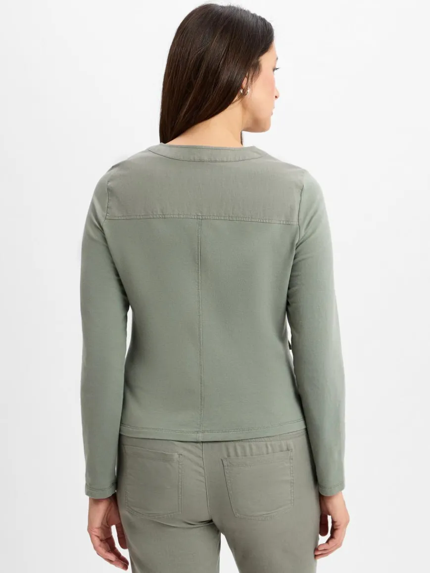 Die Jerseyjacke von Olsen bringt klassischen Chic und modernen Komfort auf den Punkt – mit taillierter Passform, edlem Baumwoll-Leinen-Mix und smarten Details ist sie ein stilvoller Begleiter für jeden Tag.