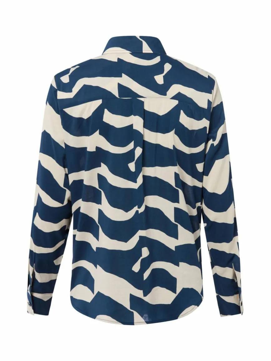 Stilvolle und vielseitige Bluse von Olsen aus leichtem Baumwollmix mit Hemdblusenkragen, langen Manschettenärmeln, kurzen Seitenschlitzen und abgerundetem Saum für eine feminine Silhouette.