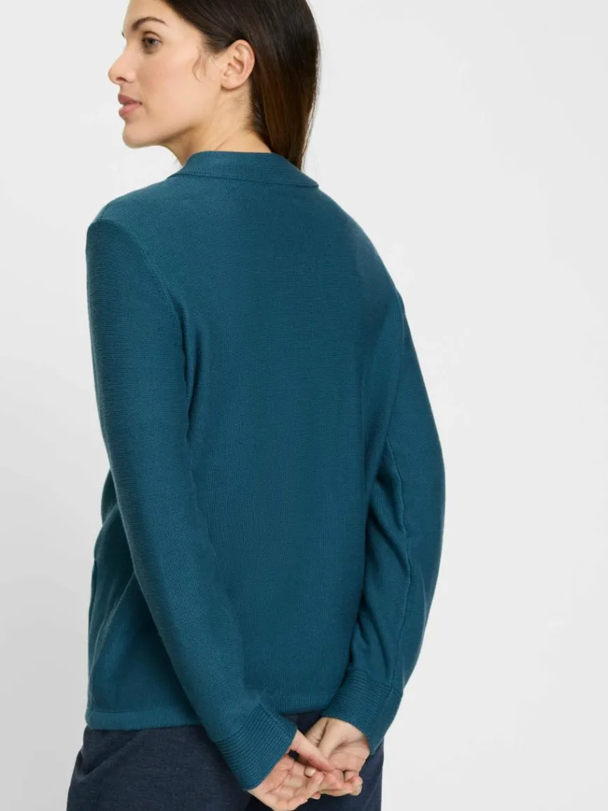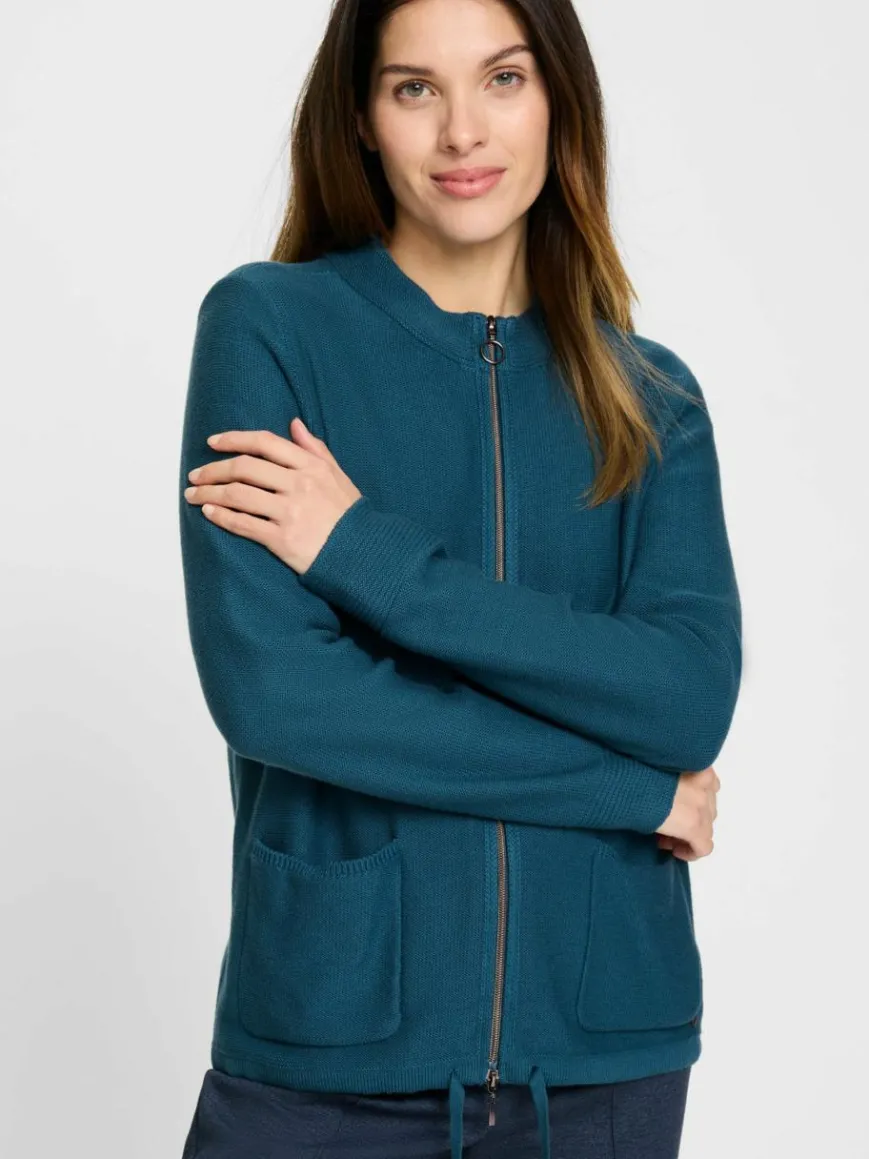 Die Strickjacke Henny von Olsen besticht im charmanten Design mit aufgesetzten Taschen und feinen Ziernähten und Tunnelzug im Saum als stilvolle Ergänzung für variable Looks.