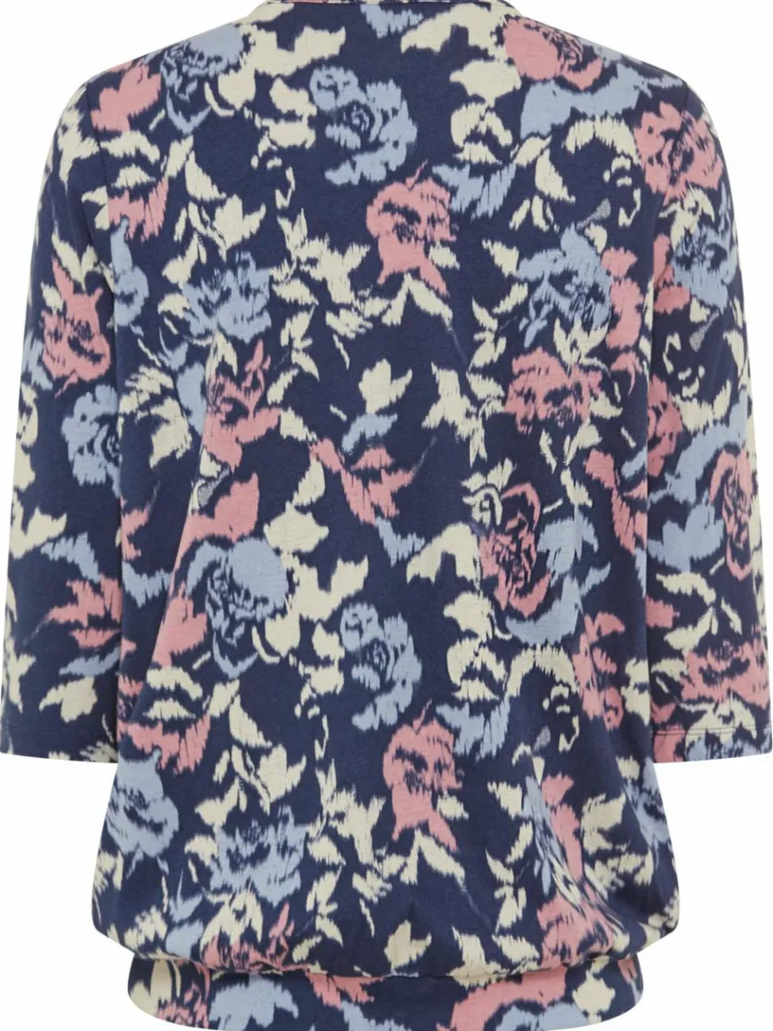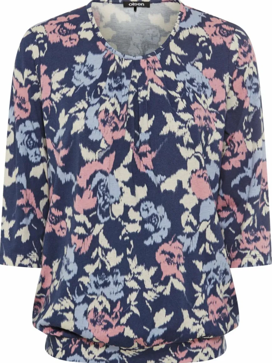 Die Faltendetails am Rundhalsausschnitt und das abstrakte Allover-Muster schenken dem Longsleeve Clara von Olsen einen verspielten Look.