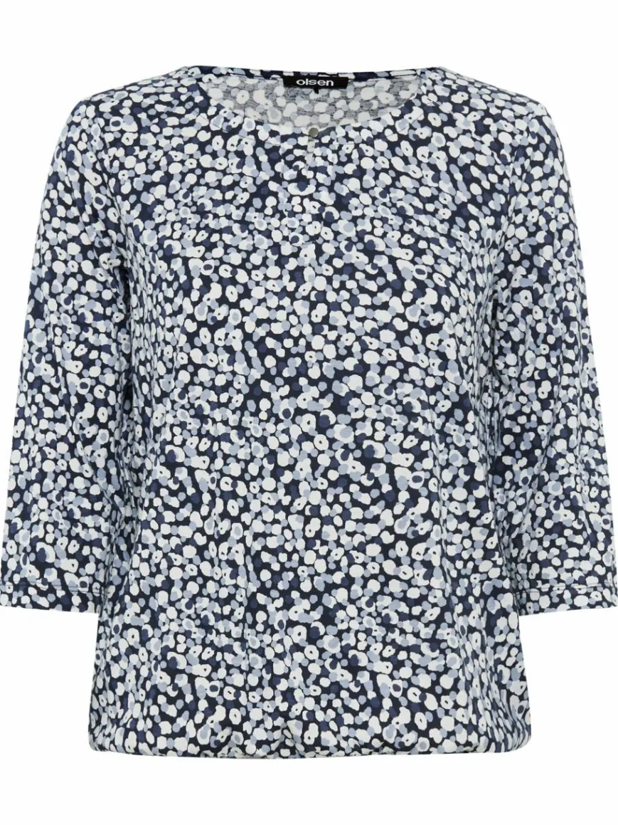 Das Longsleeve Clara von Olsen setzt mit Details wie dem Knopf und Schlitz am Rundhalsausschnitt sowie dem elastischen Bündchen im Saum stilvoll auf Coolness.