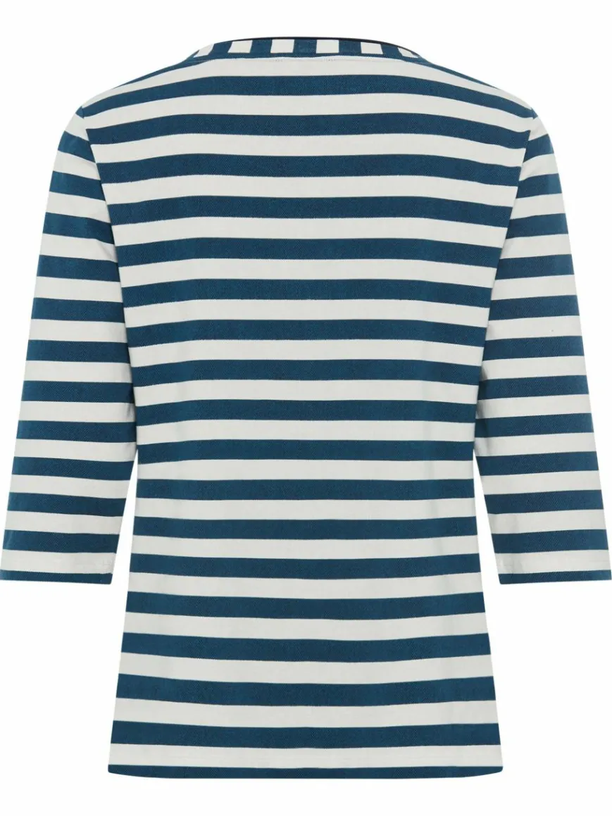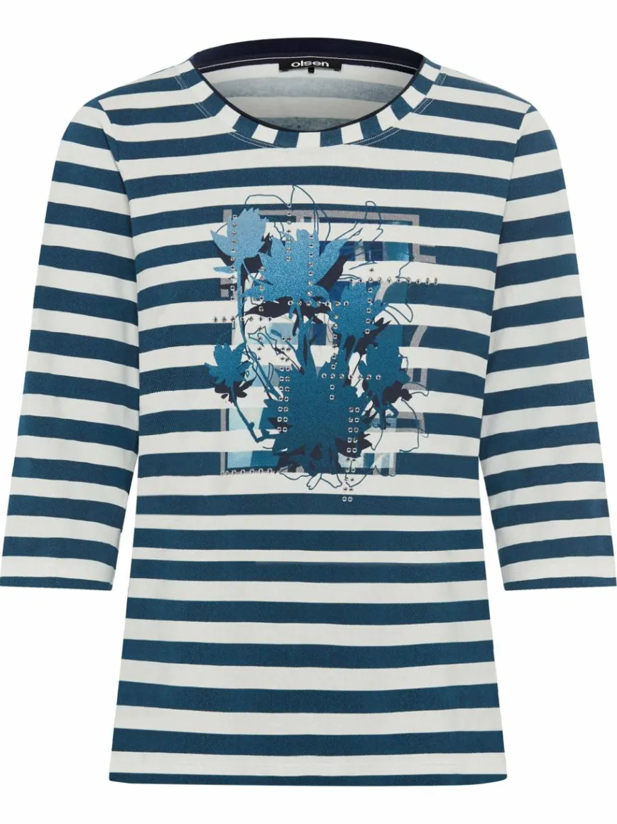 Das gestreifte T-Shirt Hannah von Olsen begeistert aus Baumwoll-Jersey mit modernem Frontprint und funkelnden Strasssteinen als feminines Keypiece.