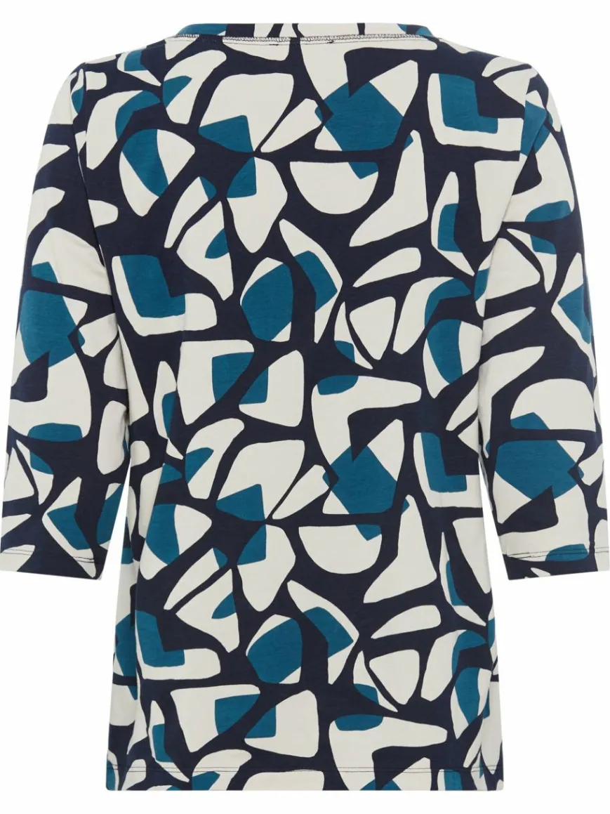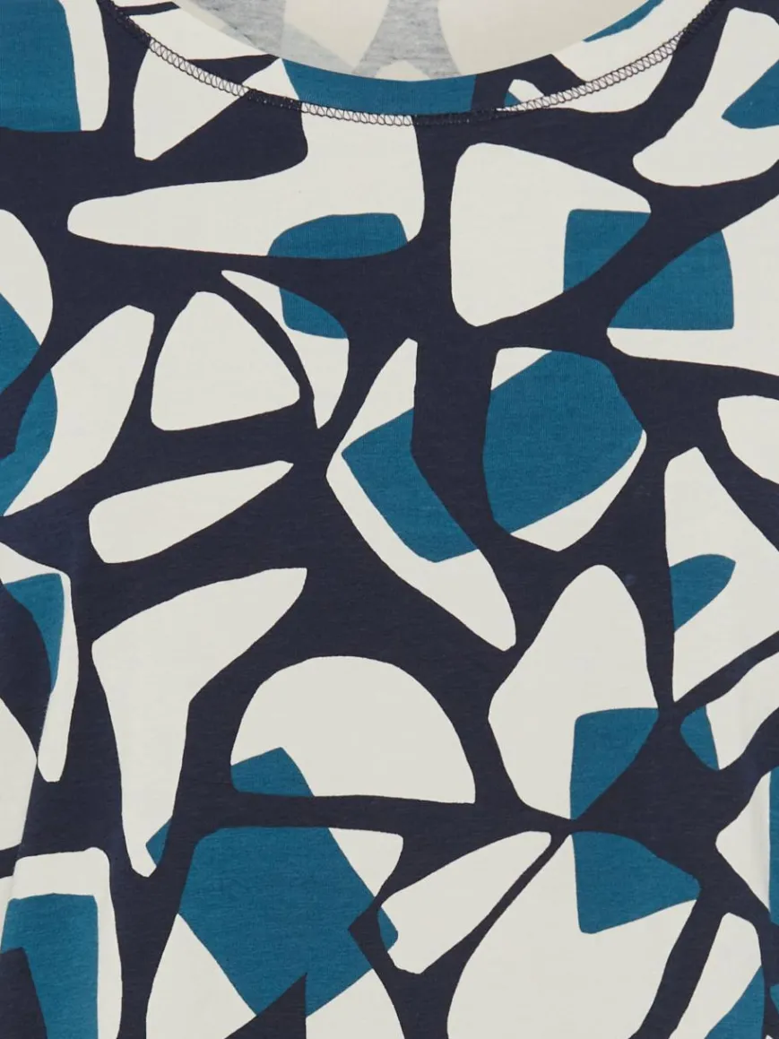 Locker figurumspielend durch geraden Schnitt ist dieses Shirt mit seinem grafischen Allover-Print. Mit Rundhalsausschnitt und 3/4-Ärmeln. Aus einem Baumwoll-Elastan-Gemisch gefertigt, was für ein angenehmes Tragegefühl sorgt. Es lässt sich vielseitig kombinieren und eignet sich sowohl für den Alltag als auch für besondere Anlässe. Länge ca. 62 cm.