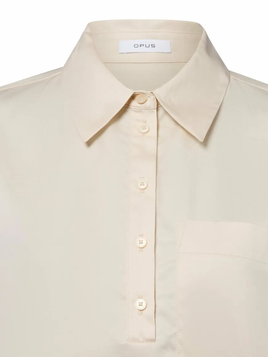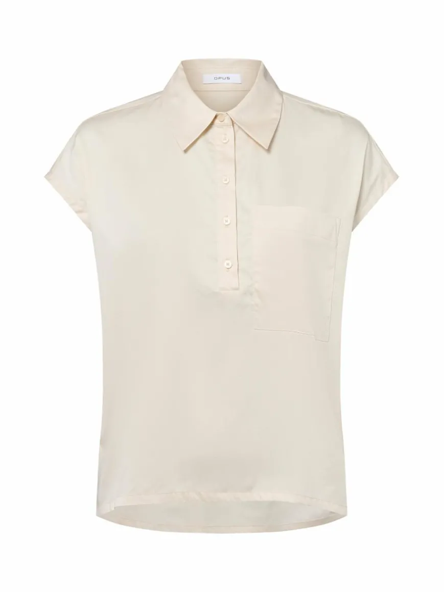 Angeschnittene Ärmel und die Tasche auf Brusthöhe verleihen der Opus Bluse Fajora einen modernen Look, ergänzt durch die verkürzte Knopfleiste sowie das rückseitige Faltendetail.