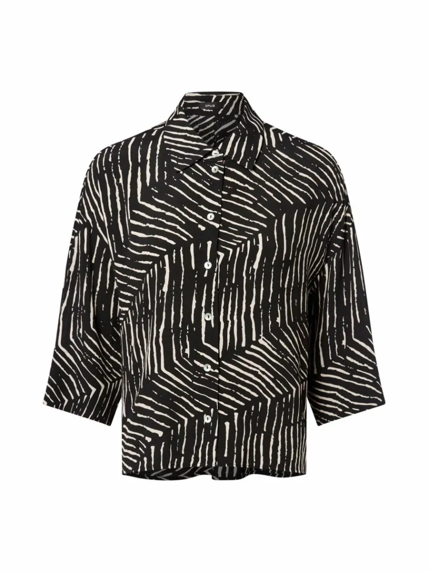 Die oversized geschnittene Viskosebluse Fiana Palm Leaves von Opus macht ihrem Namen durch den Allover-Print alle Ehre.