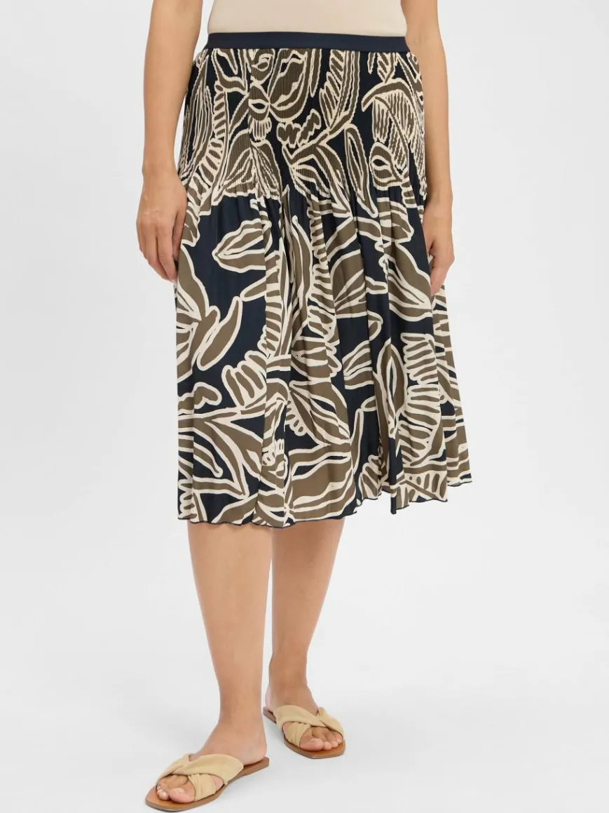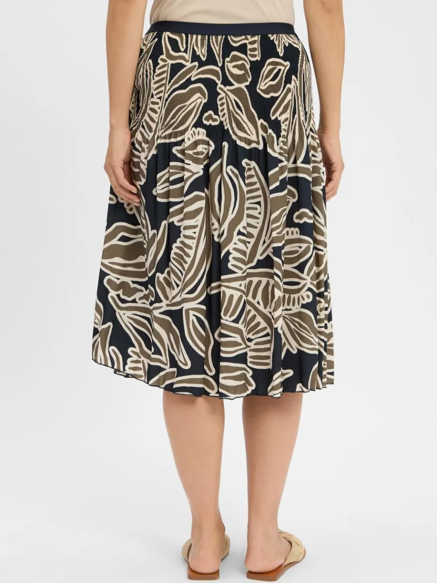 Der Midirock Ribane von Opus punktet in klassischer A-Linie mit einem komfortablen Gummibund, stilvollen Falten und einem wirkungsvollen Allover-Print.