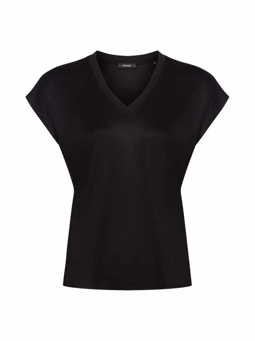 Aus reiner Viskose und mit kurzen, angeschnittenen Ärmeln überzeugt das Opus T-Shirt Savilchen als komfortables Essential.
