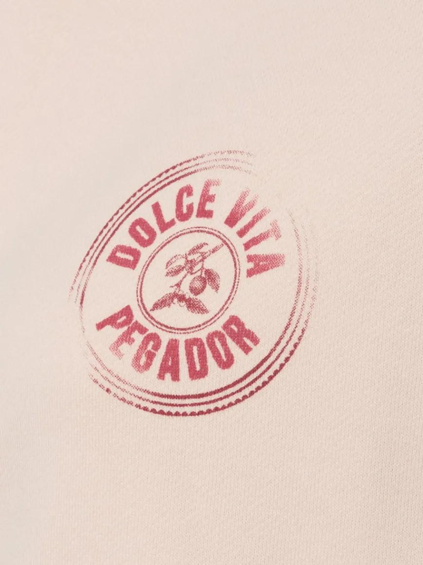 Die oversized Sweatjacke Nadia von PEGADOR punktet durch das komfortable Design mit inwendigem Soft Finish, ergänzt durch den Brust- und Backprint im Used-Look für extra Coolness.