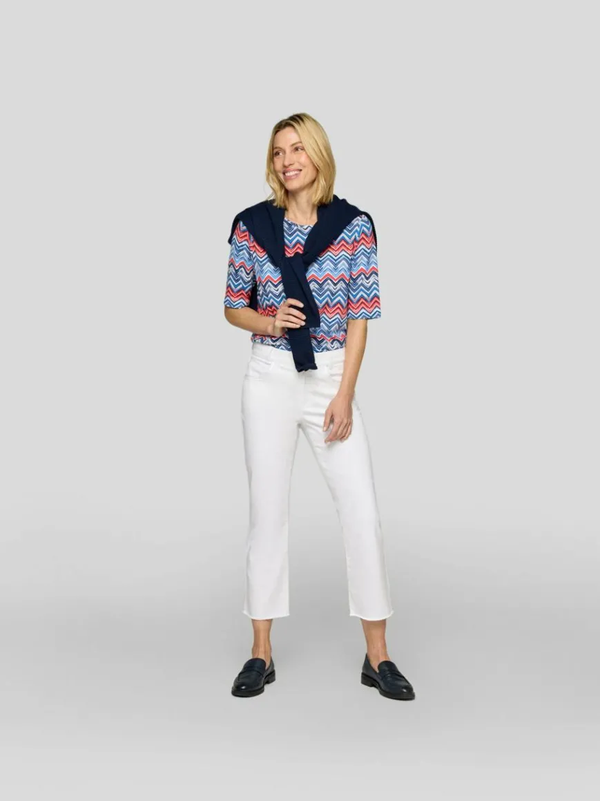 Der klassische Rundhalsausschnitt trifft auf einen angenehmen, elastischen Stoff, der für ein komfortables Tragegefühl sorgt.Ausgefallenes Zickzack-Allovermuster.Farblich harmonisch abgestimmt für einen frischen Look.Elastischer Materialmix für besten Komfort.Halbarm und Rundhalsausschnitt – ideal für jeden Tag.