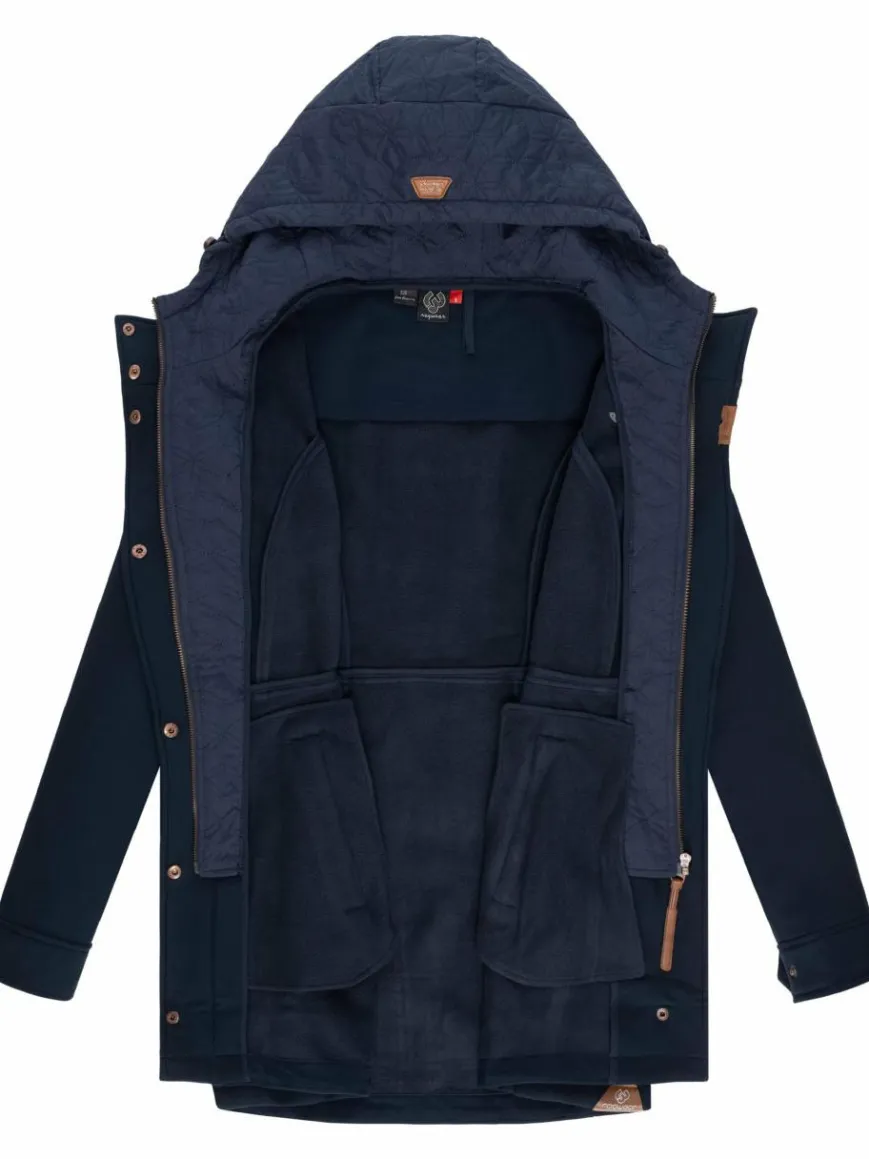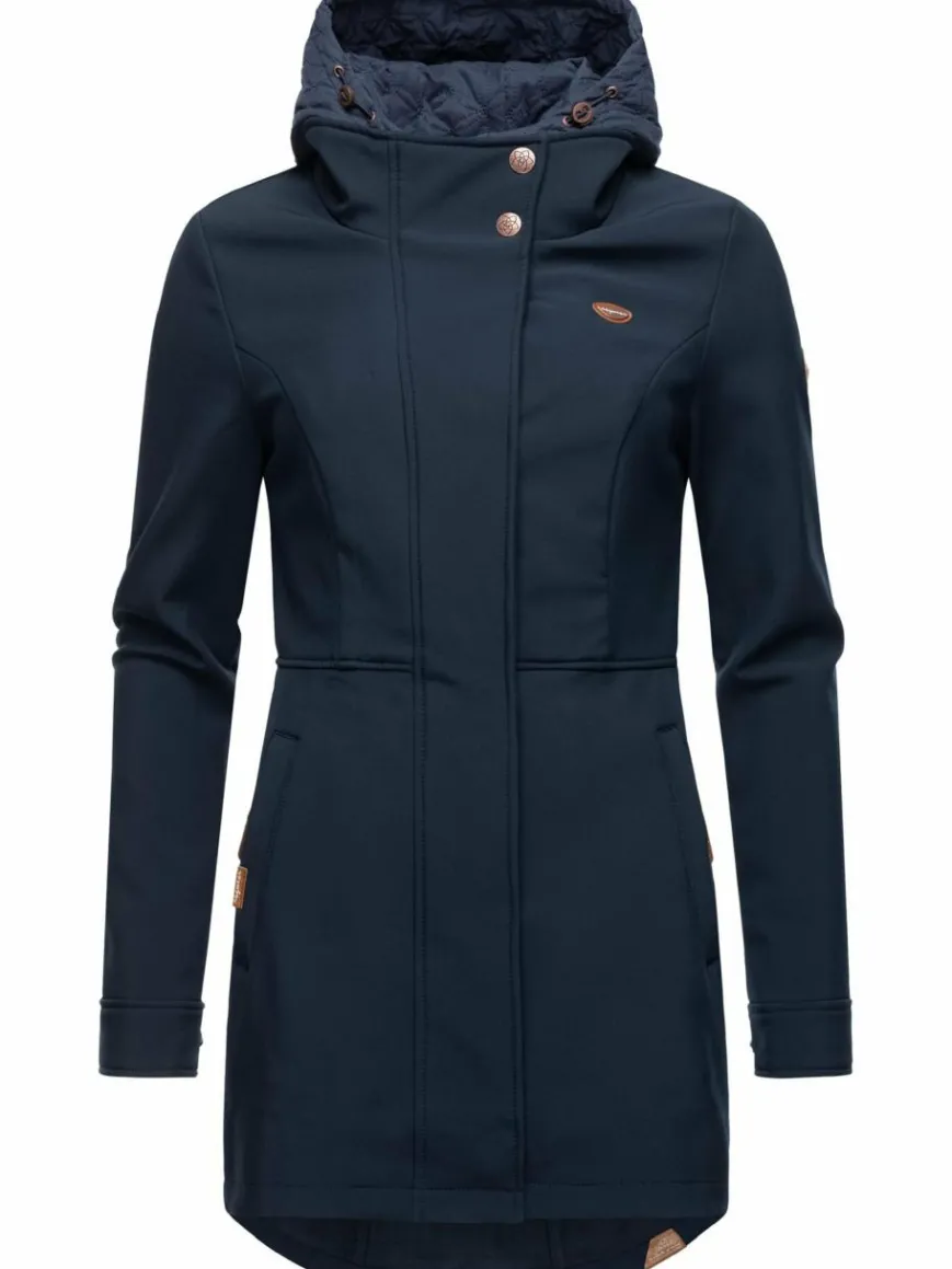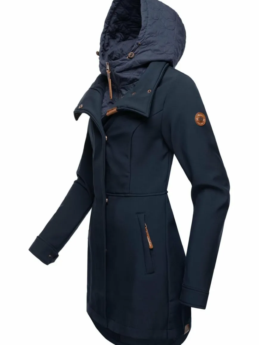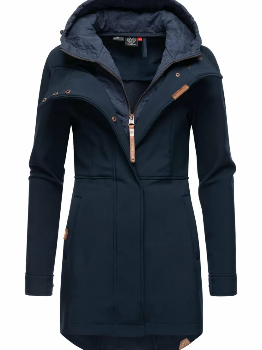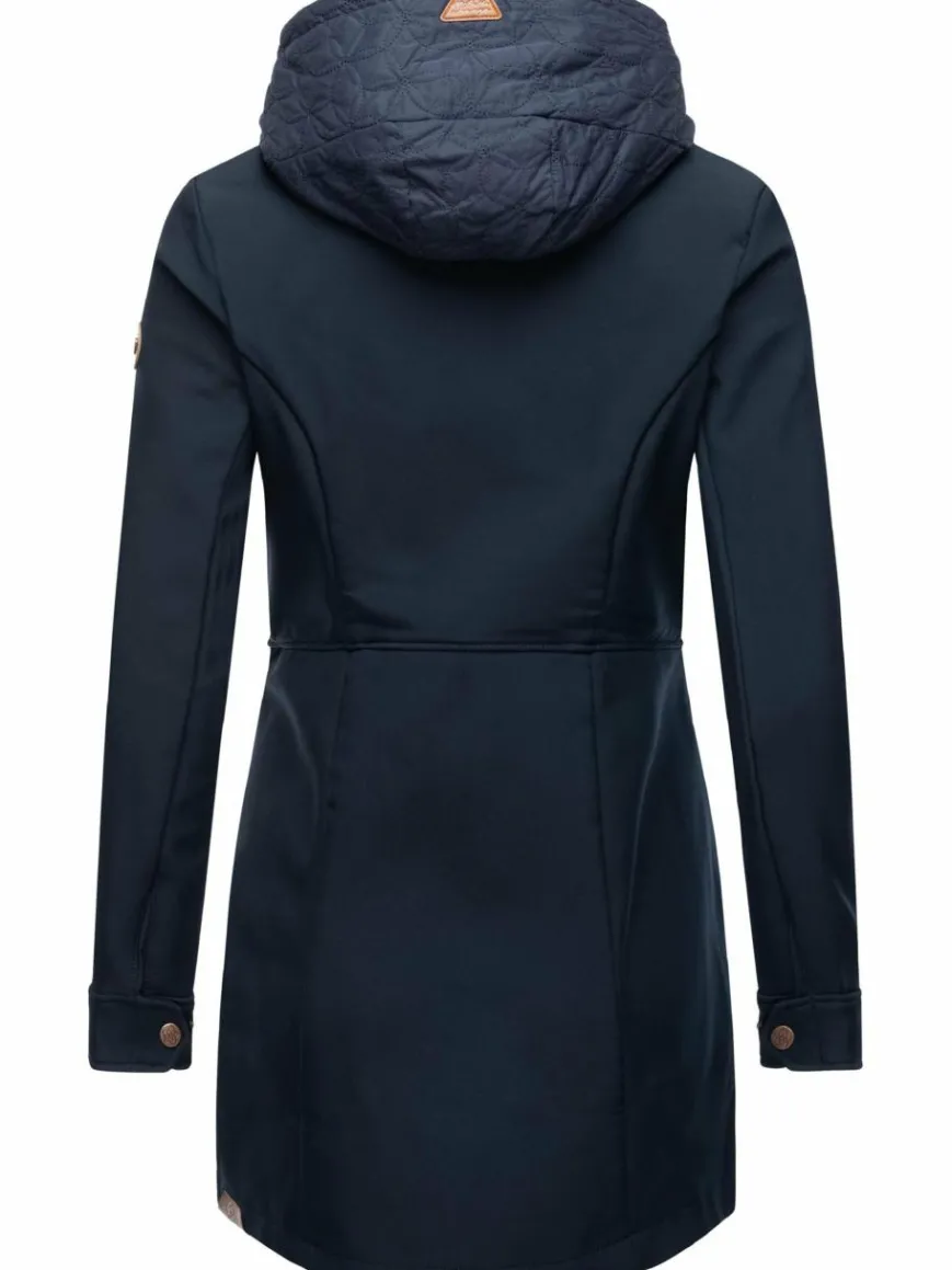 Langer Damen Softshellparka mit Kapuze in modischer Ziersteppung von Ragwear.