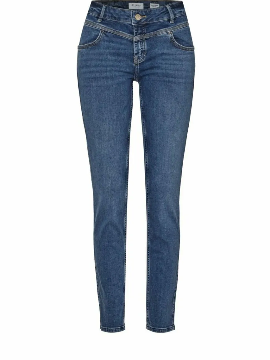Die Jeans in Knöchellänge zeichnet sich durch eine mittlere Leibhöhe sowie einem bequemen Bund aus. Die schmale Oberschenkelweite und der sehr schmale Beinverlauf garantieren eine perfekte Passform. Sie hat Stecktaschen vorne und aufgesetzte Taschen hinten. Bequemer, weicher