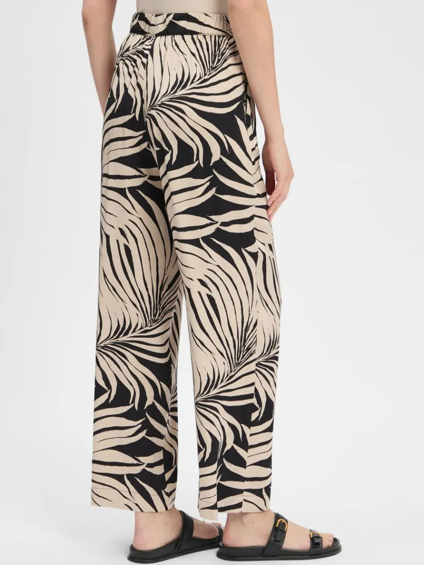 Kombiniert Tragekomfort mit einem eleganten Appeal: Die weite Hose von s.Oliver BLACK LABEL begeistert in fließender, fein glänzender Viskose-Qualität mit einem abstrakt floralen Allover-Muster.