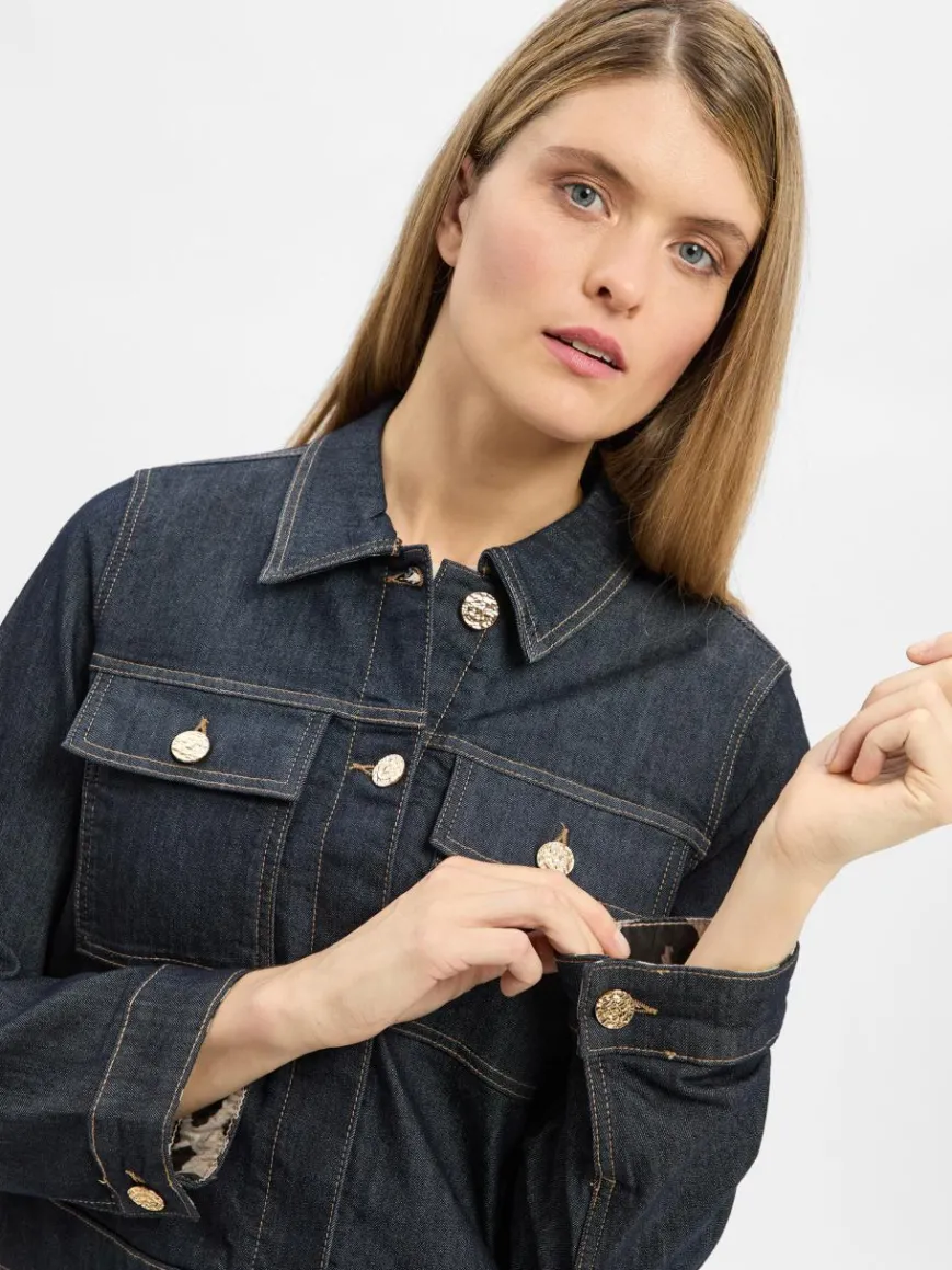 Boxy Fit, Raw Denim Optik, inwendiges Leomuster an den Ärmelabschlüssen, markante Knöpfe: Feine Details zaubern aus der s.Oliver BLACK LABEL Jeansjacke ein ganz besonderes Piece.