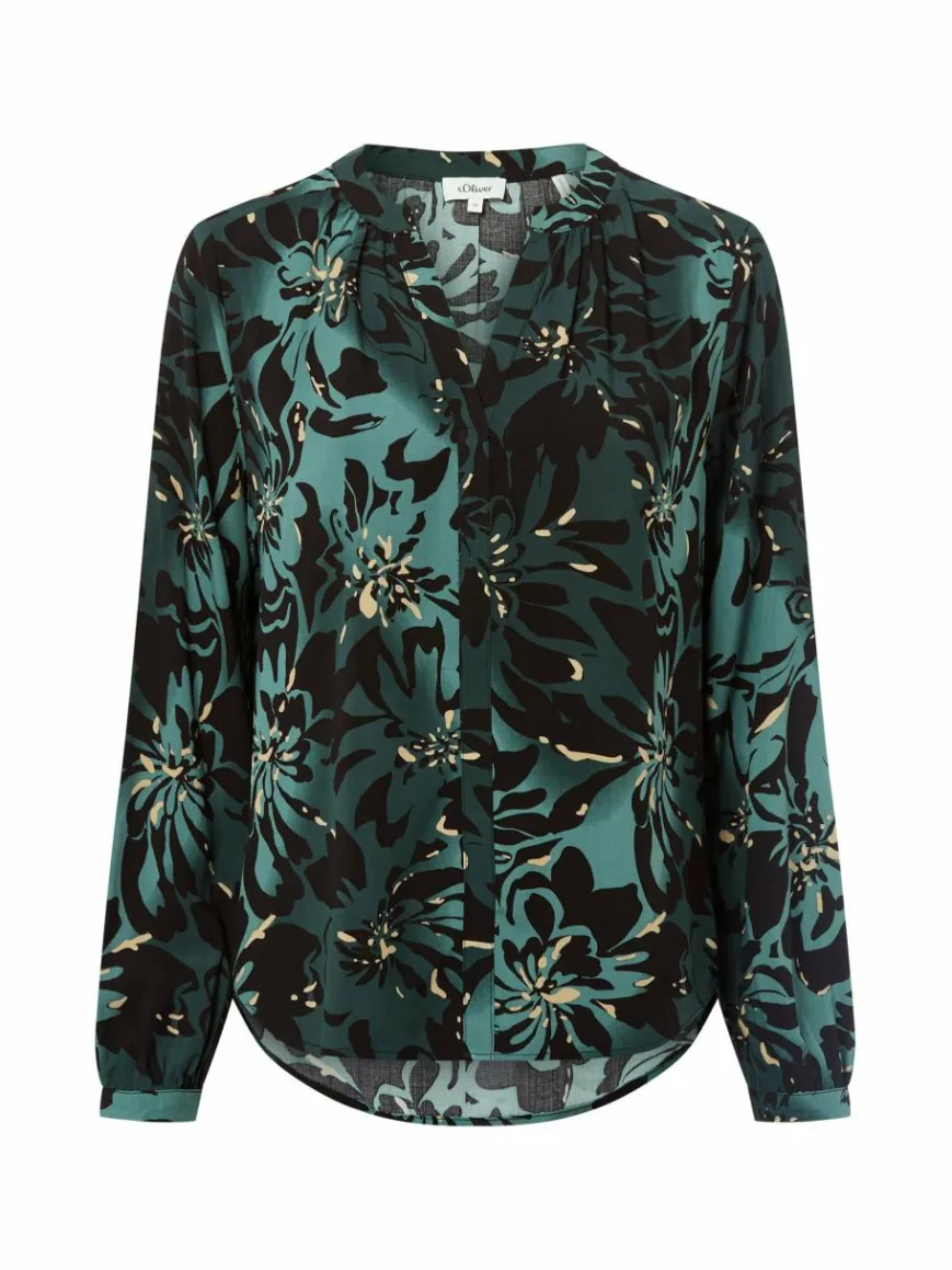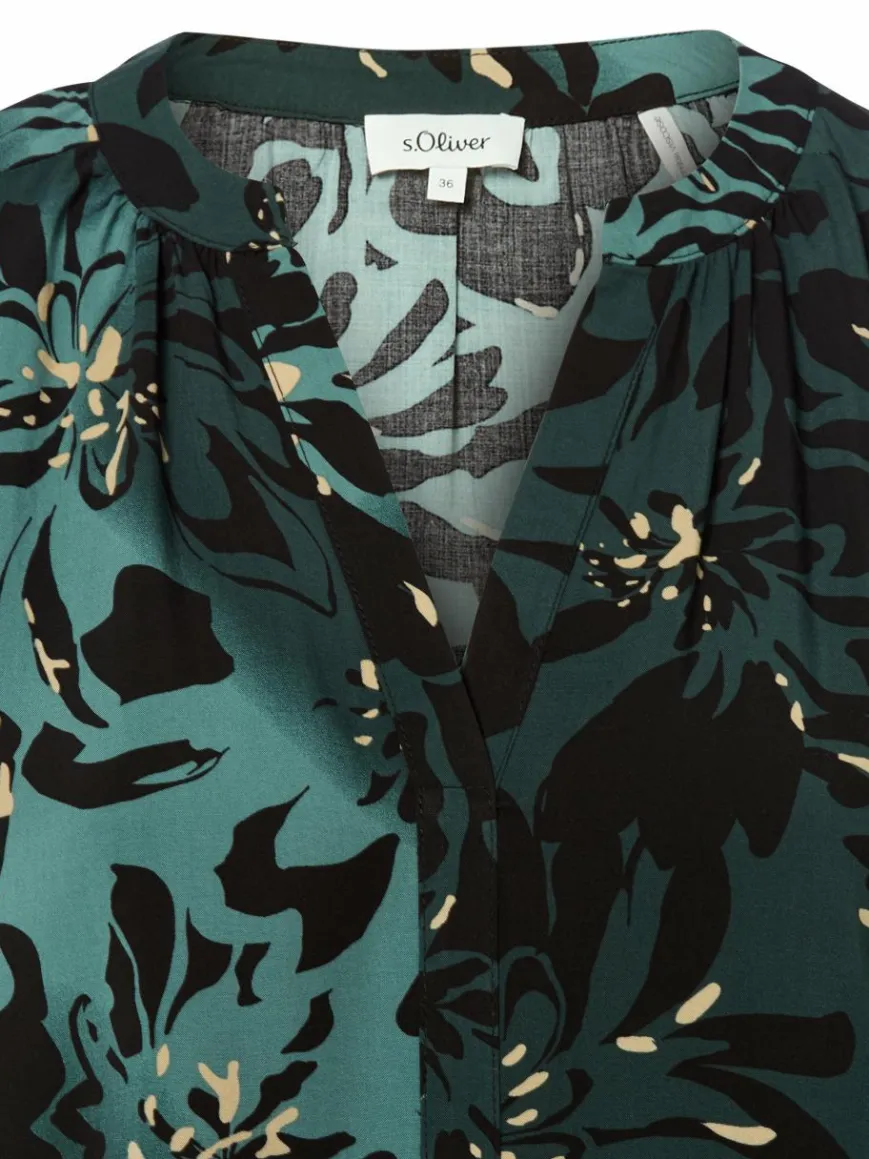 Das s.Oliver Blusenshirt fällt angenehm locker und begeistert zudem mit seiner fließenden Viskose-Qualität – ein echtes Wohlfühl-Piece.
