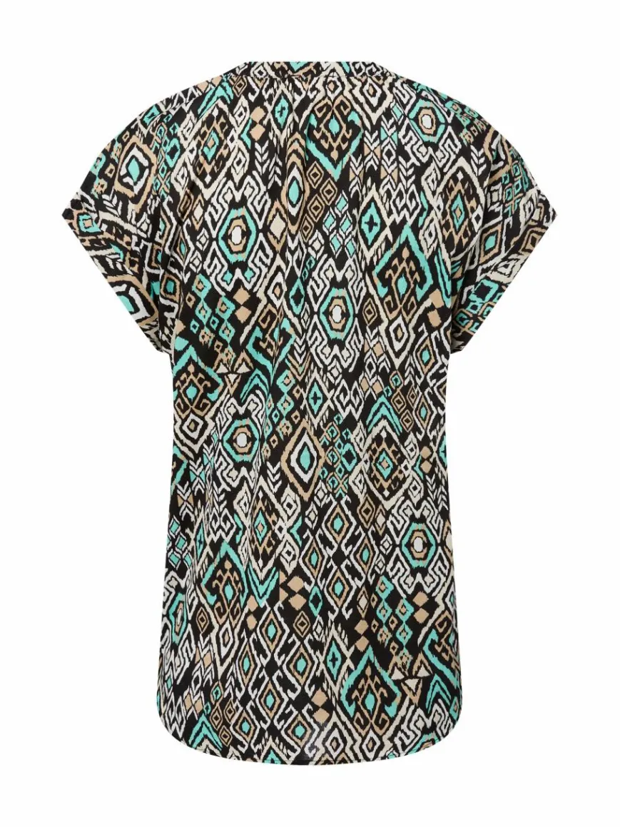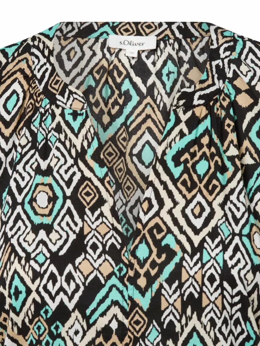 Die Tunikabluse von s.Oliver setzt mit der feinen Baumwolle auf eine luftig-leichte Qualität, während das Allover-Muster optisch für Dynamik im Look sorgt.