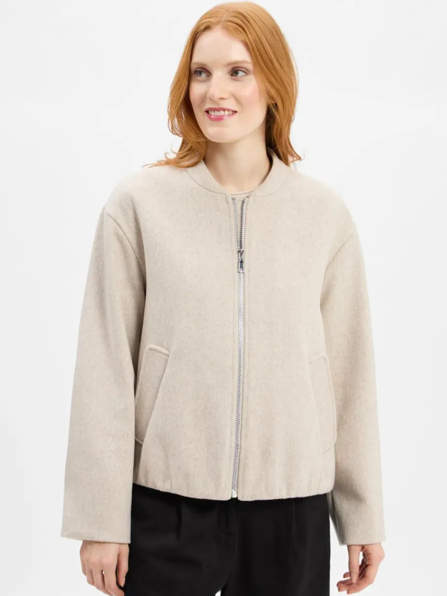 Easy Everyday-Piece: Der wollene Blouson von s.Oliver punktet in einem sanften Melange-Look mit typischem Collegekragen, einem markanten Zipper und zwei Eingrifftaschen.