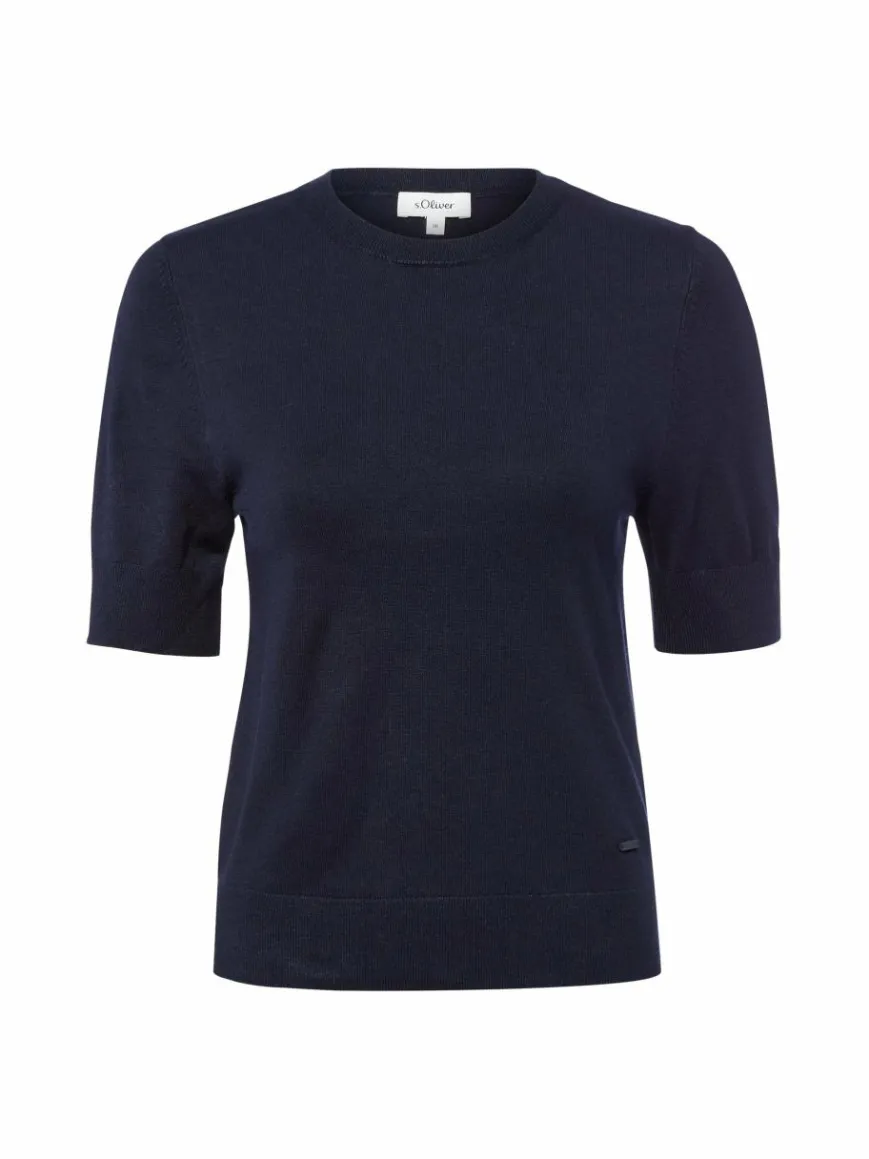 Im zeitlosen Design überzeugt das Shirt von s.Oliver aus angenehm leichten Feinstrick mit Rippbündchen und feinen Nähten