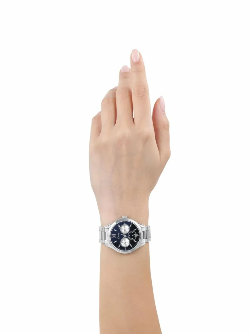 - Das Armband dieser klassischen Damenuhr hat eine Länge von 19 cm. Die Uhr für Damen aus Edelstahl ist wasserdicht bis zu einer Tiefe von 5 Bar
