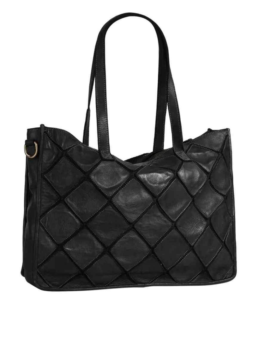 Ein echter Blickfang: der italienische Leder Shopper von Samantha Look! Die kontrastfarbigen Nähte und das großflächige Rautenmuster bringen eine Prise Verspieltheit in das Design der Tasche und frischen Wind in Ihre Garderobe. Als besonders praktisch erweist sich das geräumige Hauptfach. Alles, was Sie im Alltag begleitet, findet dort seinen Platz. Verstauen Sie vielgenutzte Gegenstände in diversen Einsteckmöglichkeiten. So sind das Smartphone oder der Schlüssel stets griffbereit.