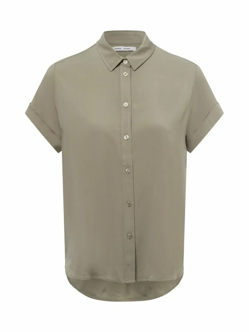 Samsøe Samsøe Blusen*Damen Kurzarmbluse – Majan schilf uni