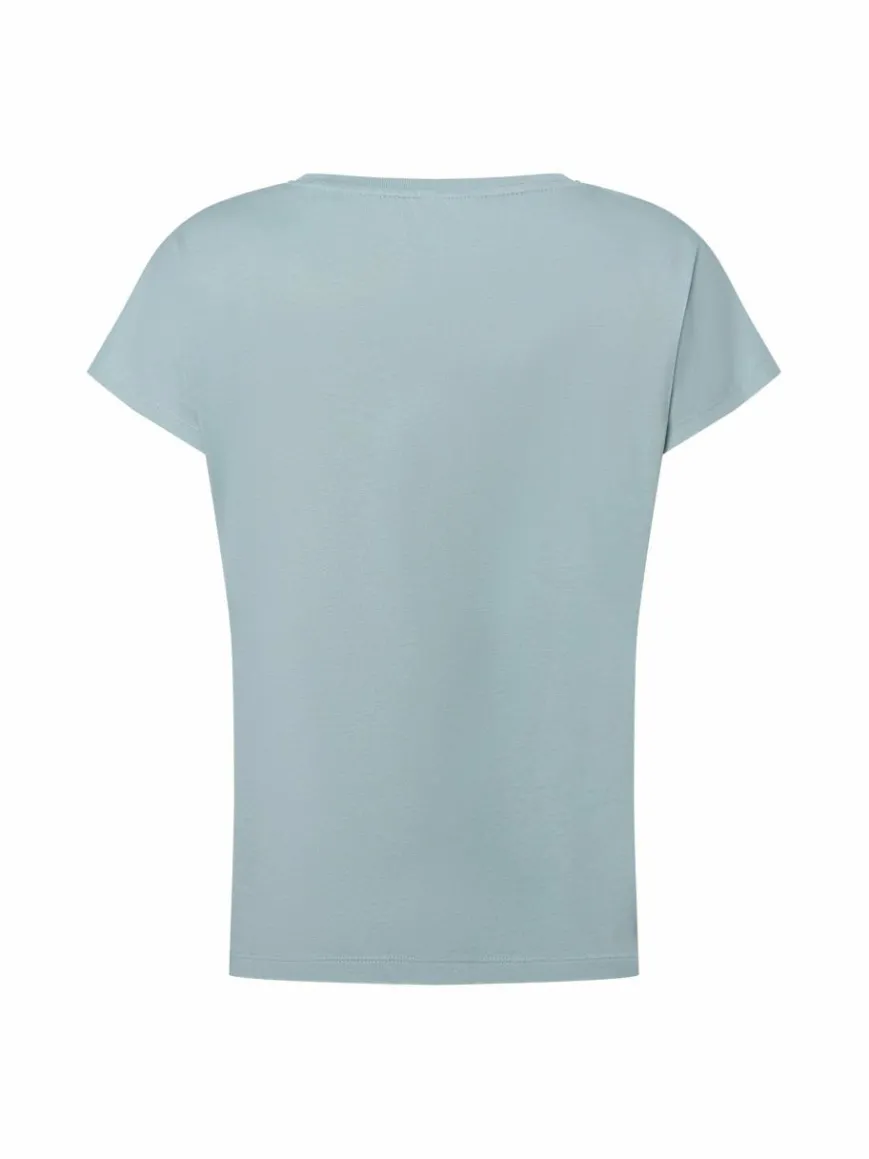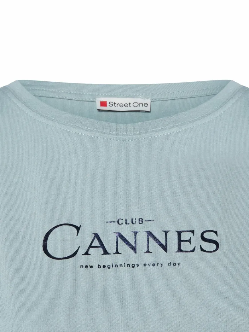 Modernes T-Shirt von Street One aus softem Baumwollmix mit extrakurzen Ärmeln und prägnantem Front-Lettering – lässig und trendbewusst.