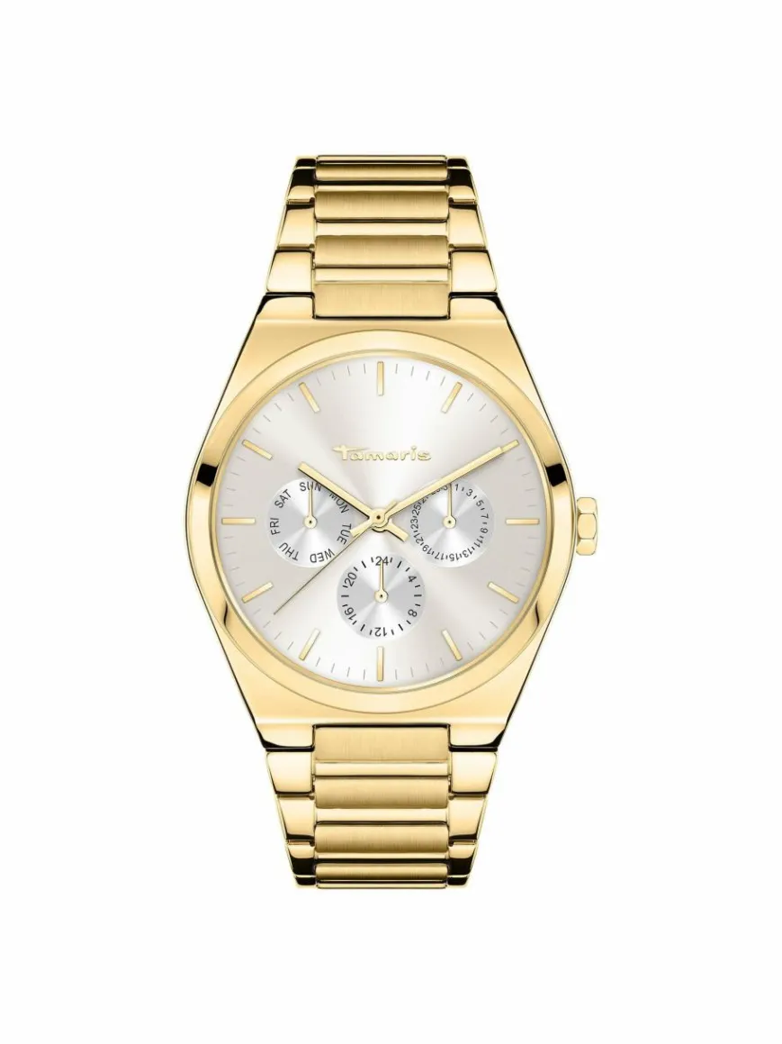 Sportlich und modern, begeistert diese schöne Tamaris Multifunktionsuhr mit rundem, flachem Gehäuse und poliertem Edelstahlarmband. Auf dem Zifferblatt sorgen erhabene Indexe für beste Ablesbarkeit und eine elegante Note.