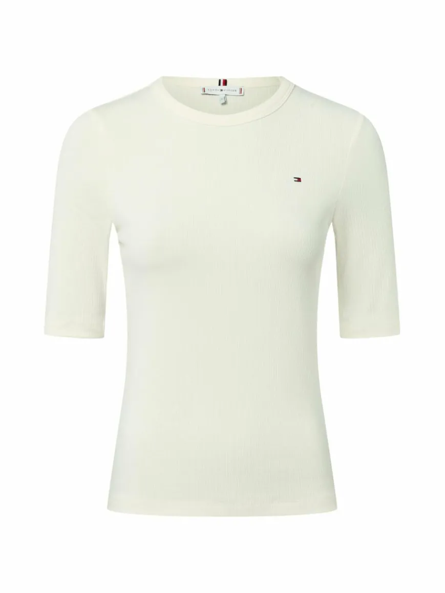 Das schmal geschnittene Tommy Hilfiger T-Shirt überzeugt mit feiner Ripp-Struktur und Halbarm-Design.