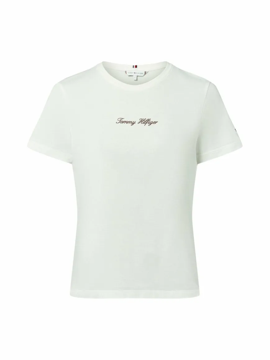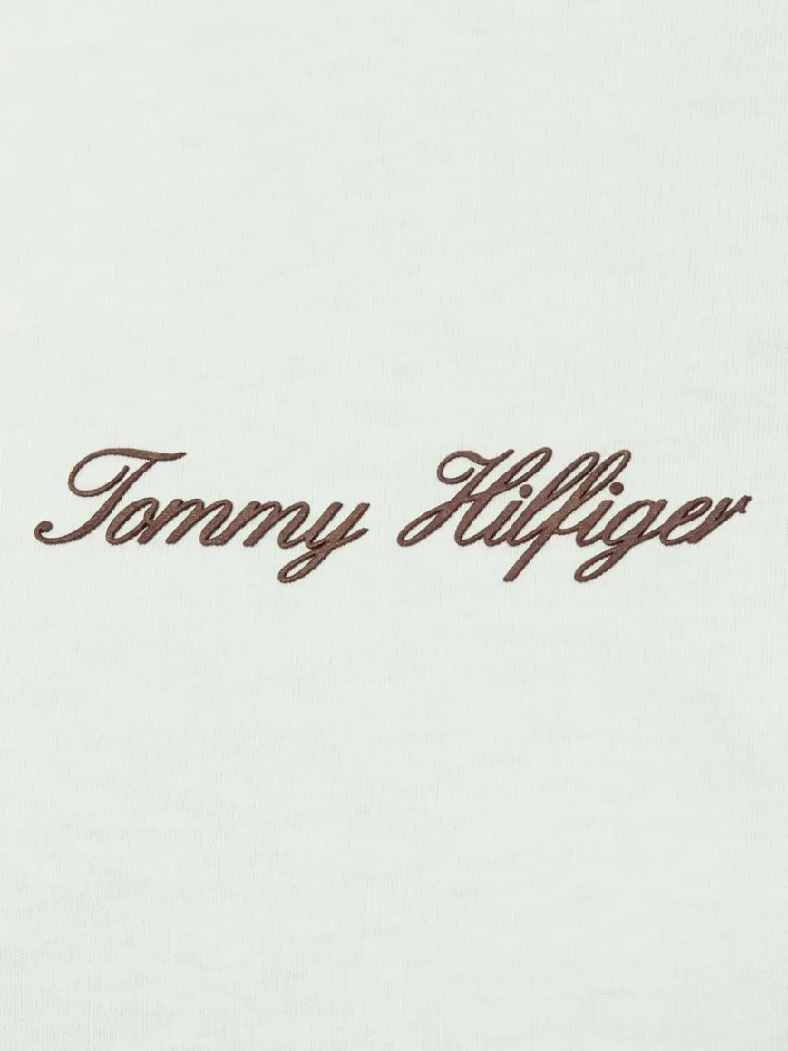 Das Baumwollshirt mit kontrastfarbenem Tommy Hilfiger Logo-Schriftzug auf Brusthöhe ergänzt die Freizeitgarderobe um ein unkompliziertes Basic.