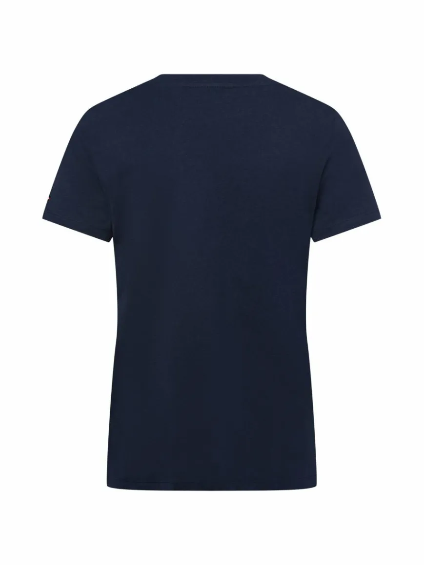 Das Tommy Hilfiger T-Shirt bereichert jede Casual-Garderobe und macht sowohl zur Jeans als auch Chino oder weiten Stoffhose eine Top-Figur.