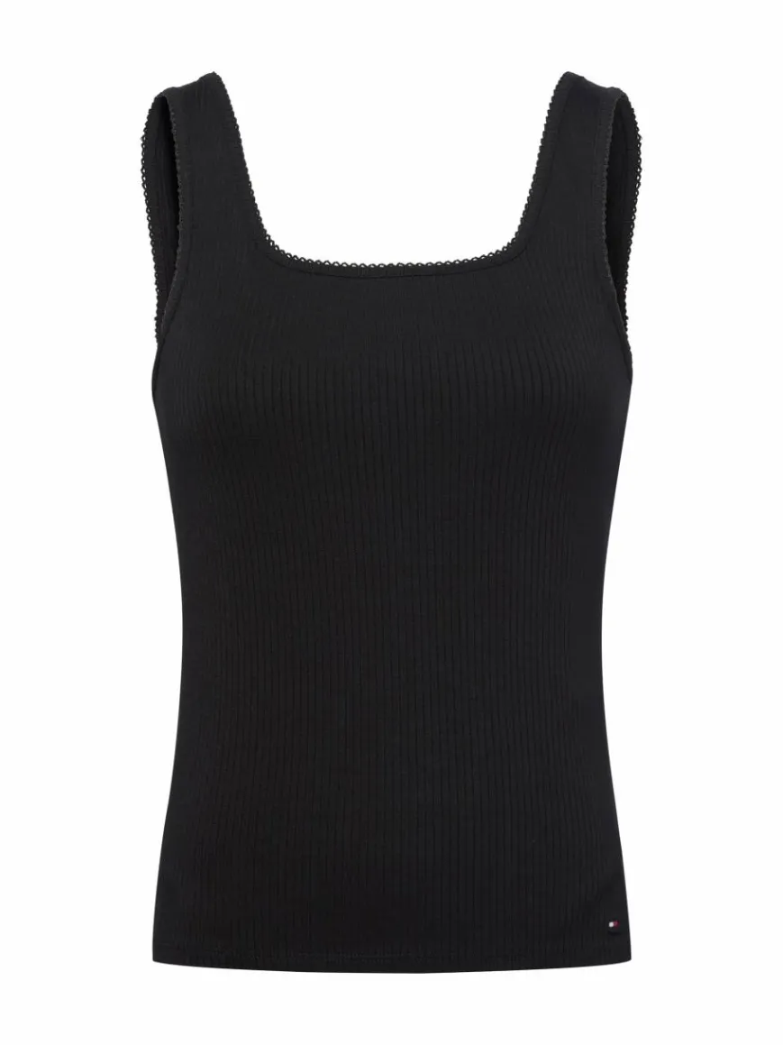 Feine Picots zieren die Ausschnittlinie des Tommy Hilfiger Tops und machen es zu einem charmanten Blickfang unter Blusen oder Strickjacken.
