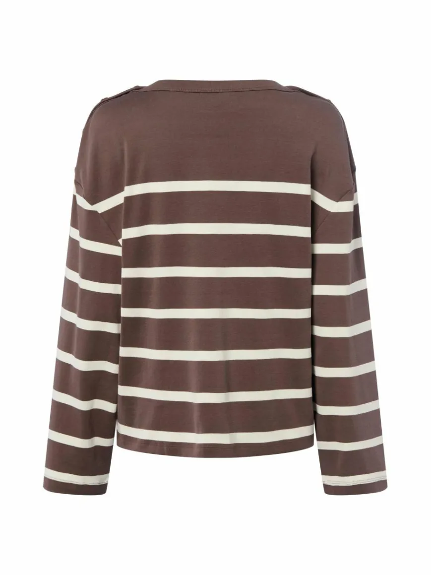 Passend zum maritimen Streifen-Design zeigt sich das Tommy Hilfiger Sweatshirt noch mit geprägten Goldknöpfen an der Schulterpartie.
