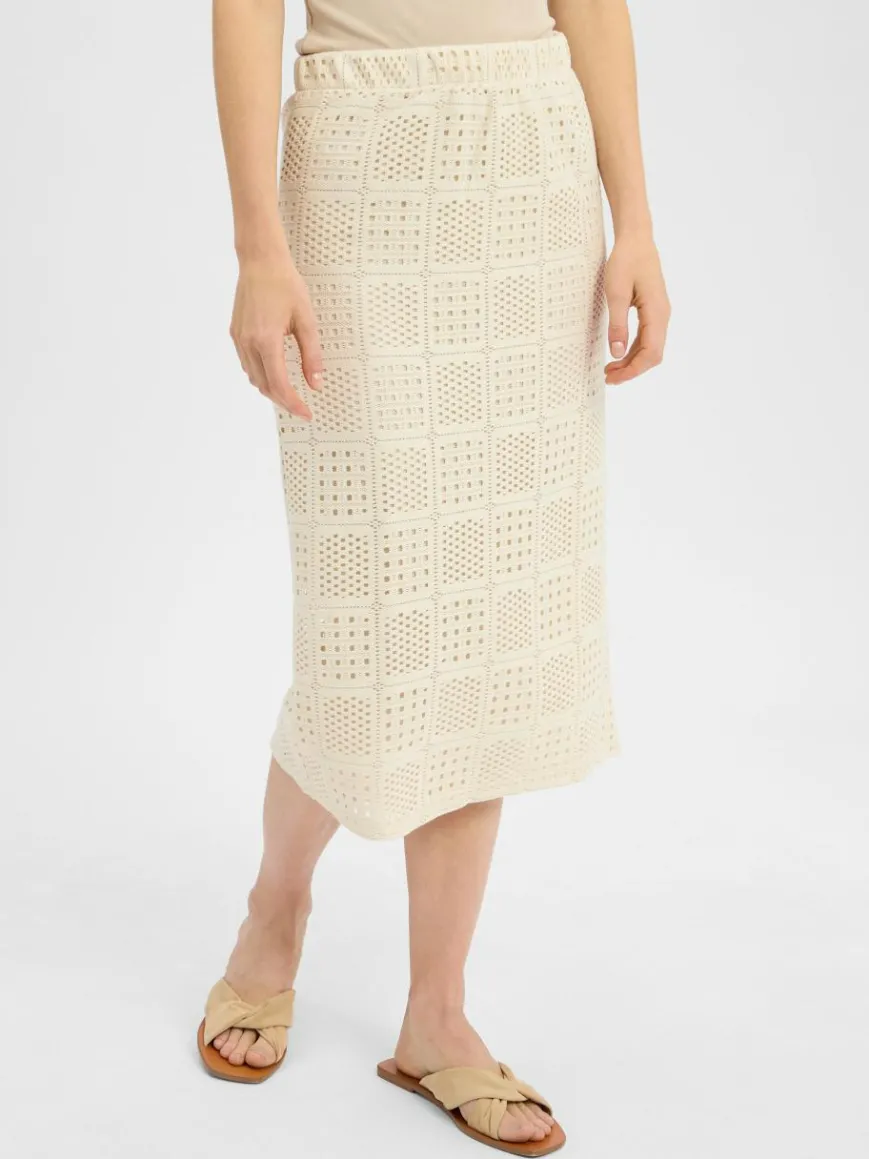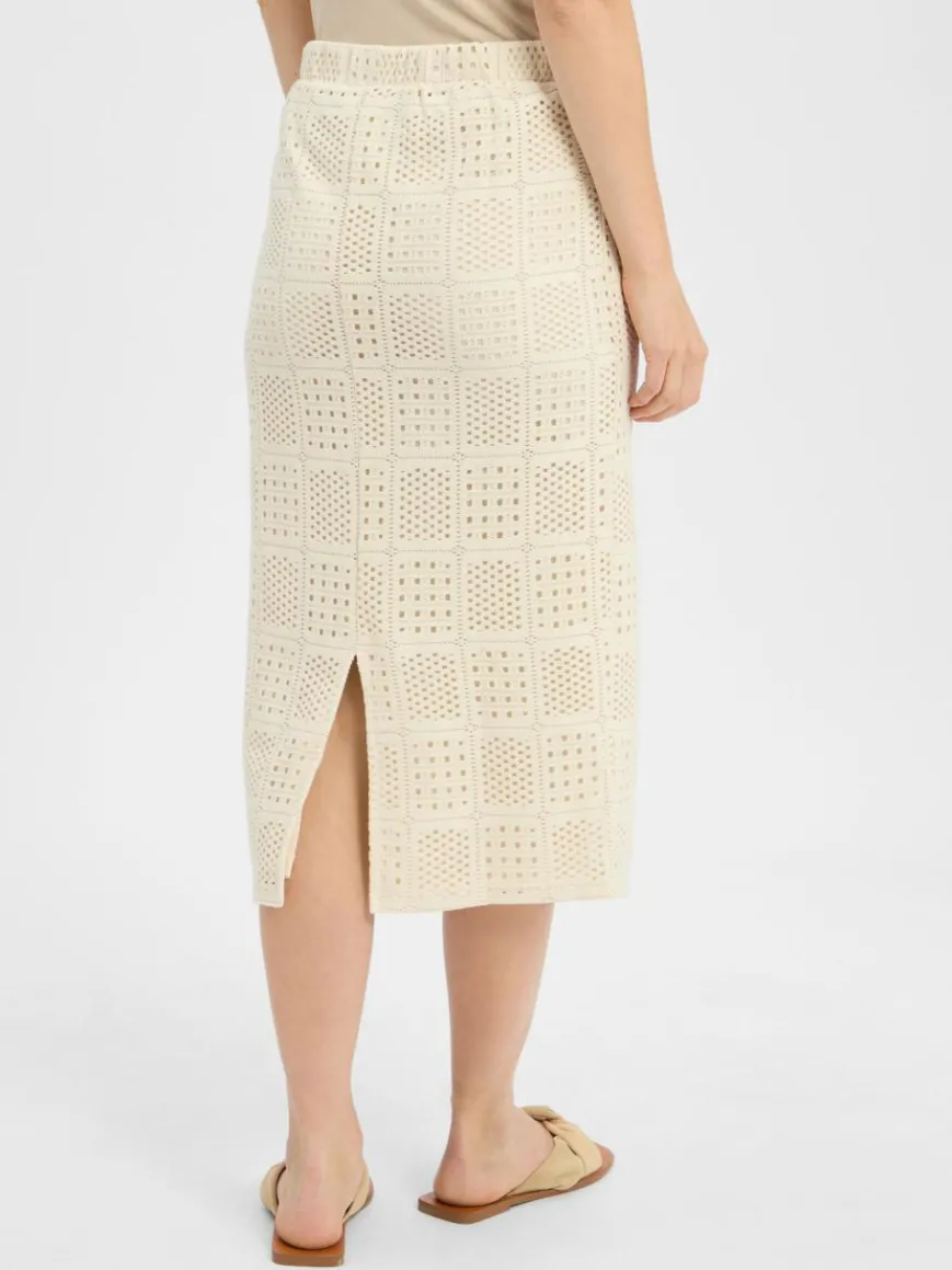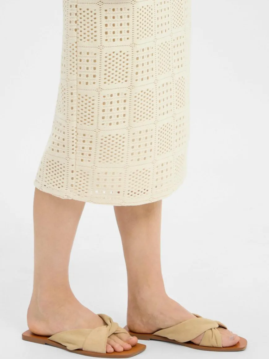 Der Midirock VINovira von VILA wirkt mit seiner feinen Lochstickerei sehr feminin und erstrahlt im Mix mit unifarbenen Oberteilen besonders schön.