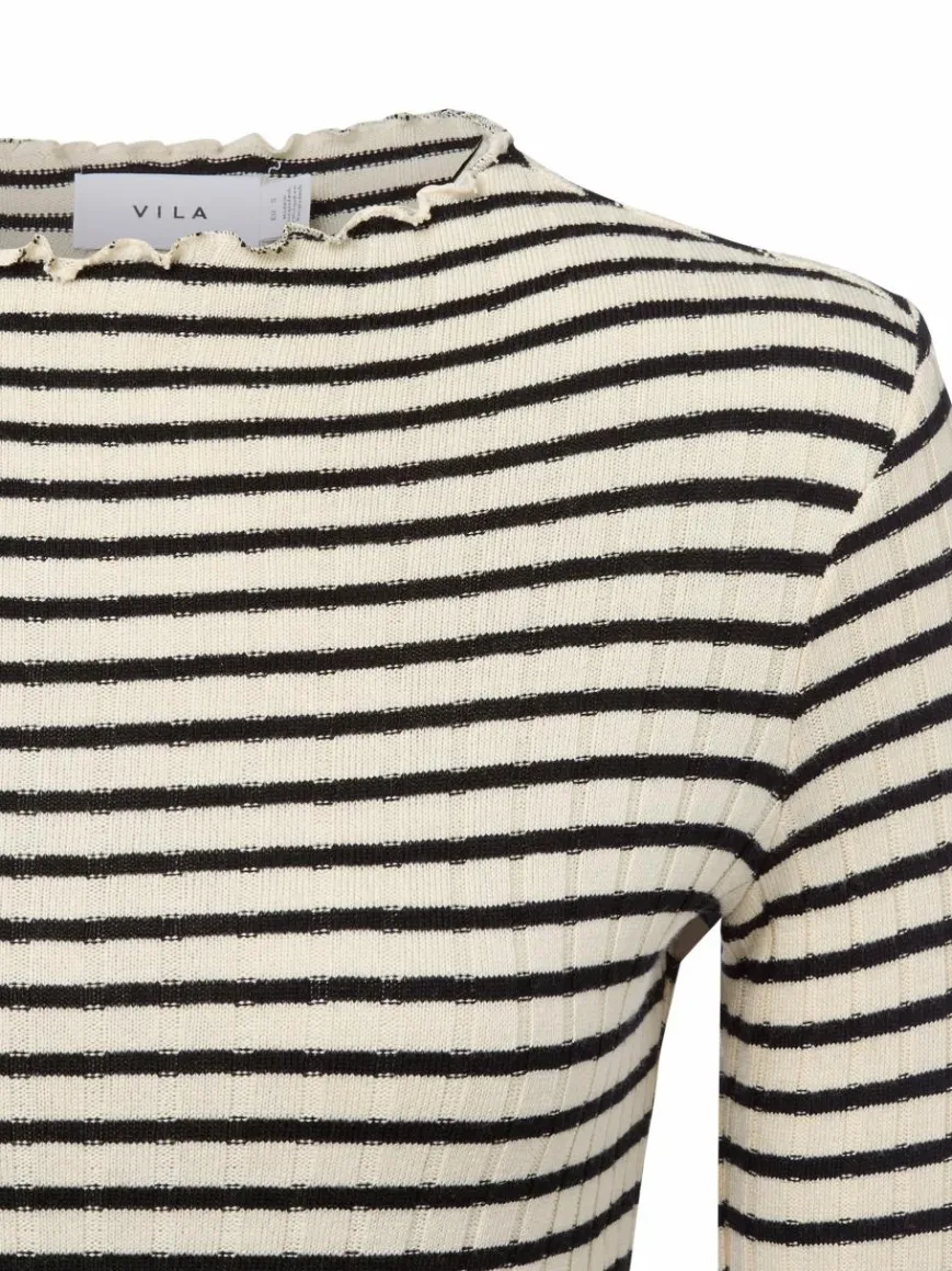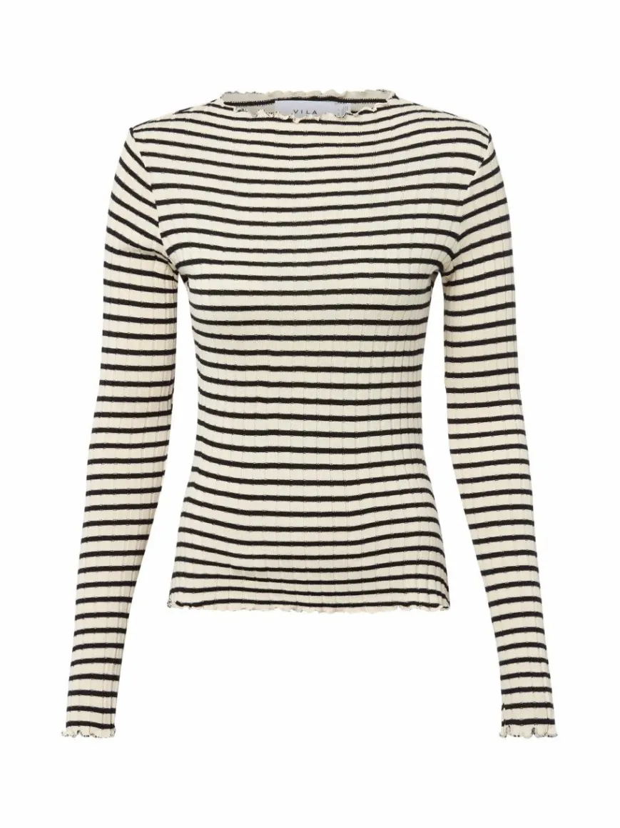 Das strukturierte Langarmshirt VIRika von VILA zeigt sich mit feinen Volants und im Viskosemix als raffiniertes Item für verschiedene Looks.