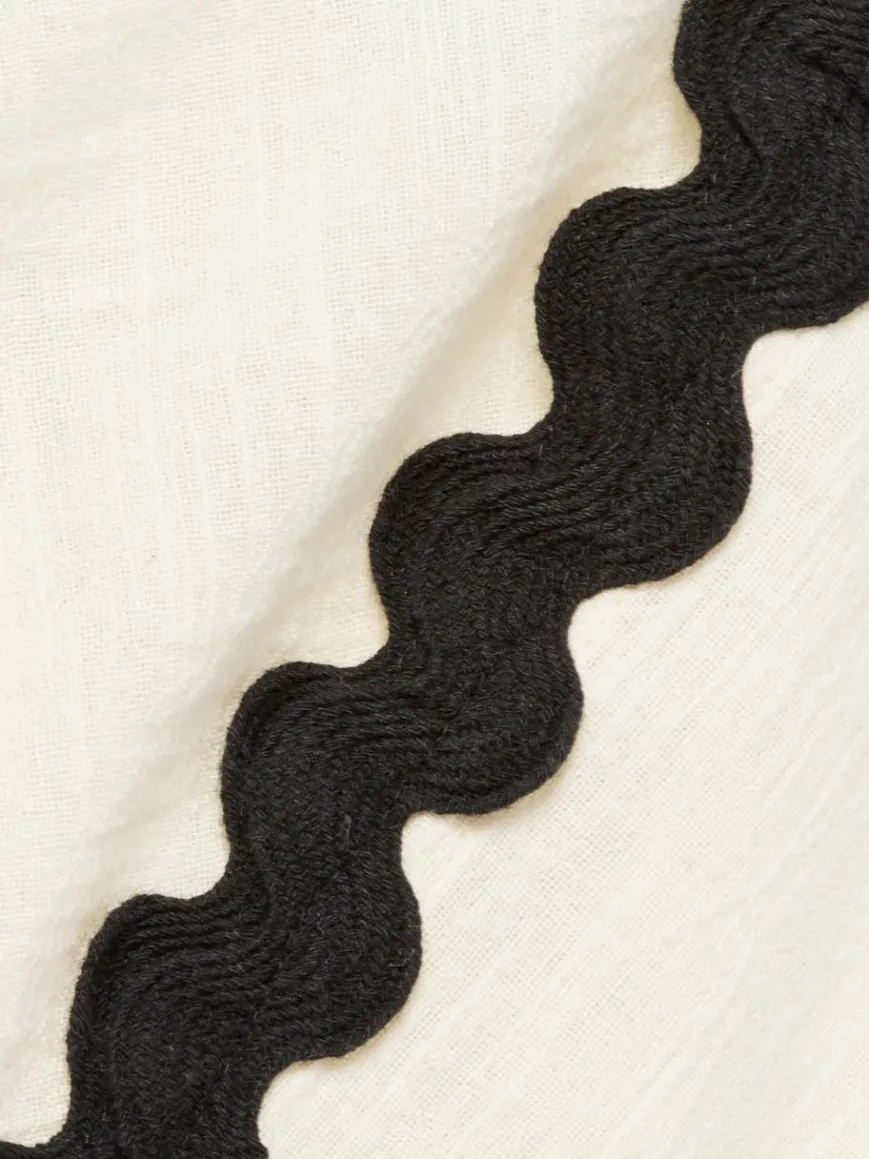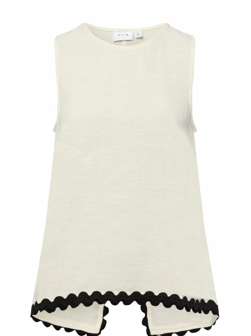 Das Baumwoll-Top VIManda von Vila ist mit der luftigen Baumwoll-Qualität, dem lockeren A-Linien-Schnitt und den kontrastfarbenen Spitzenbordüren eine ideale Ergänzung für sommerliche Freizeit-Looks.