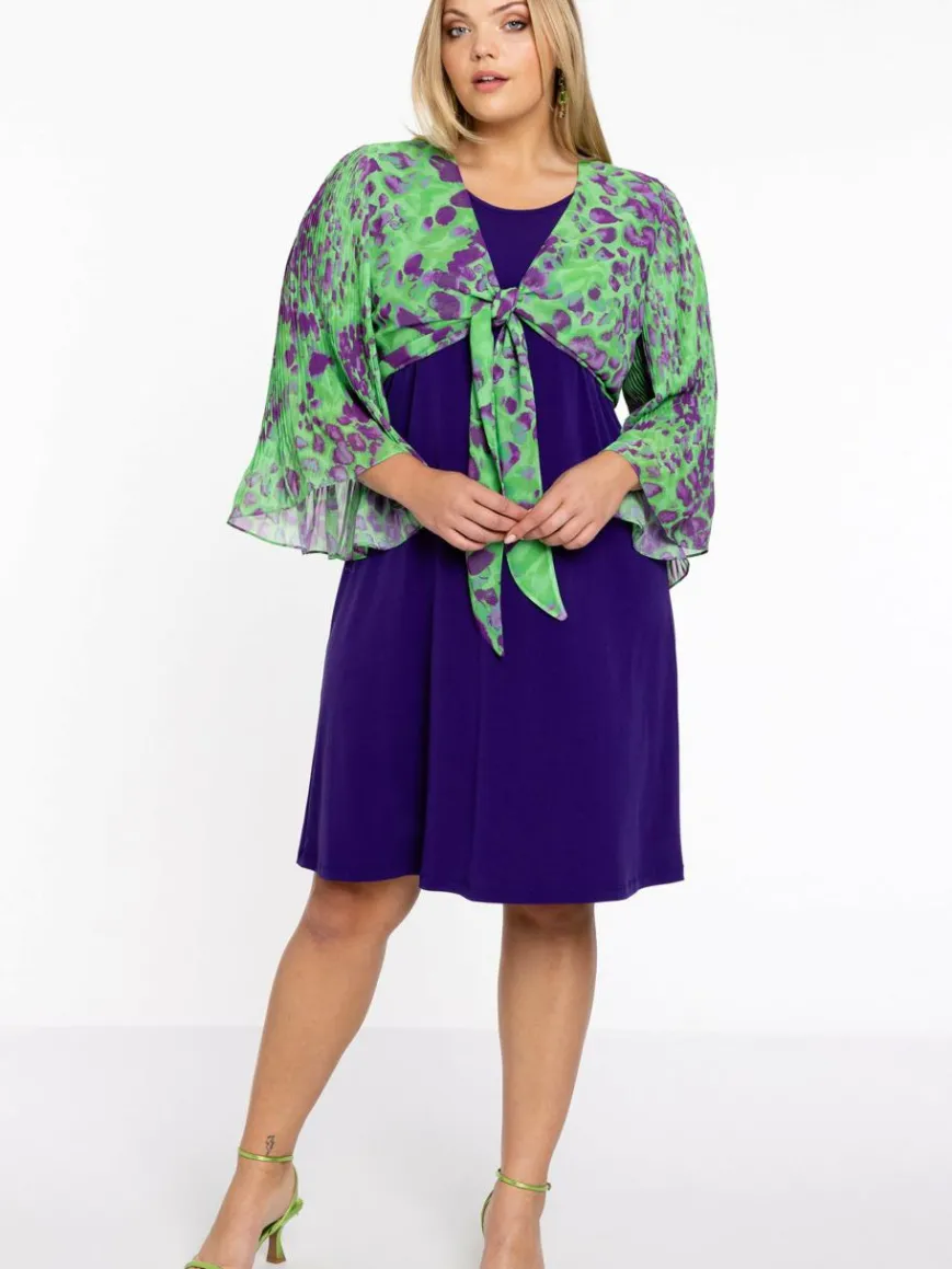 Niedlich und vielseitig ist dieses Bolero, das sich mit vielen verschiedenen Farben kombinieren lässt. Tragen Sie es entweder über einem ärmellosen Oberteil oder als Überwurf über dem ärmellosen Kleid, wenn es in einer süßen Sommernacht kalt wird. Mit weiten Ärmeln mit Plissee-Effekt und Rüschen vorne zum Binden. Aus Voile.